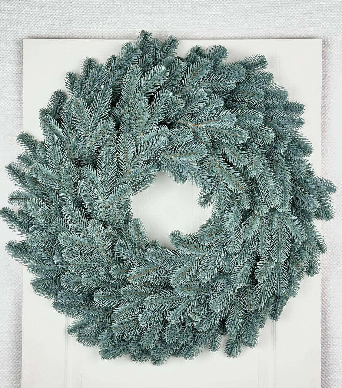 Большой рождественский хвойный венок Lux литой, голубой, 70 см