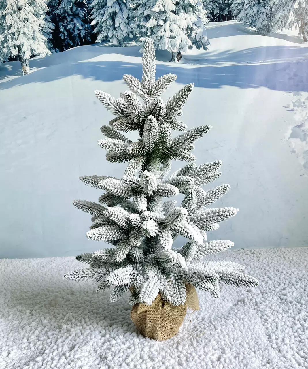 Ёлка Classic литая пышная в мешковине 70 см заснеженная