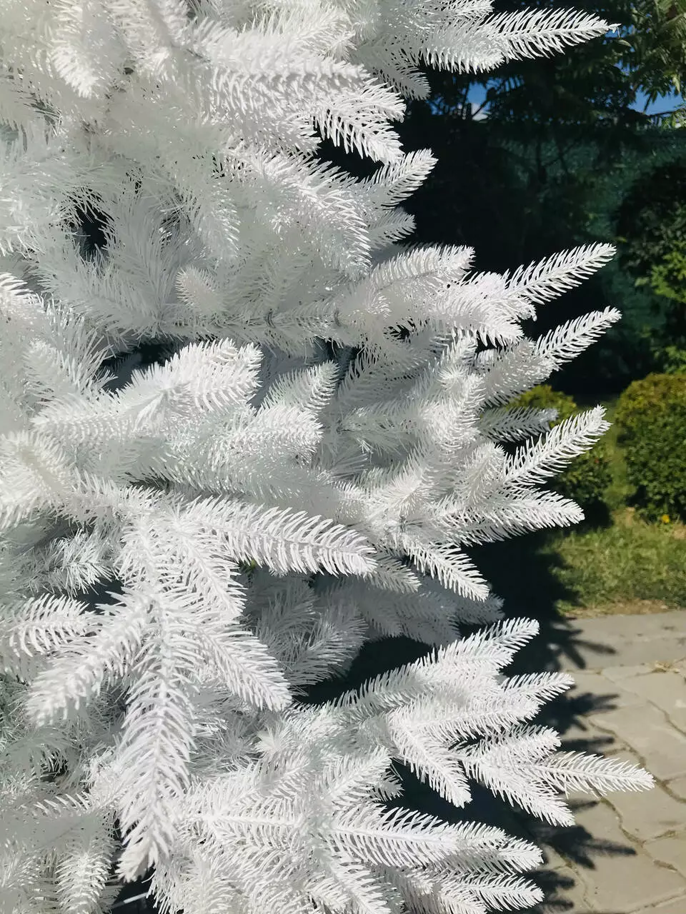 Совет: для белых елок лучше использовать электрогирлянды с белым свечением. Тогда елка смотрится еще более воздушной и сказочной. Белое свечение делает белую ель полупрозрачной и как-будто даже призрачной.