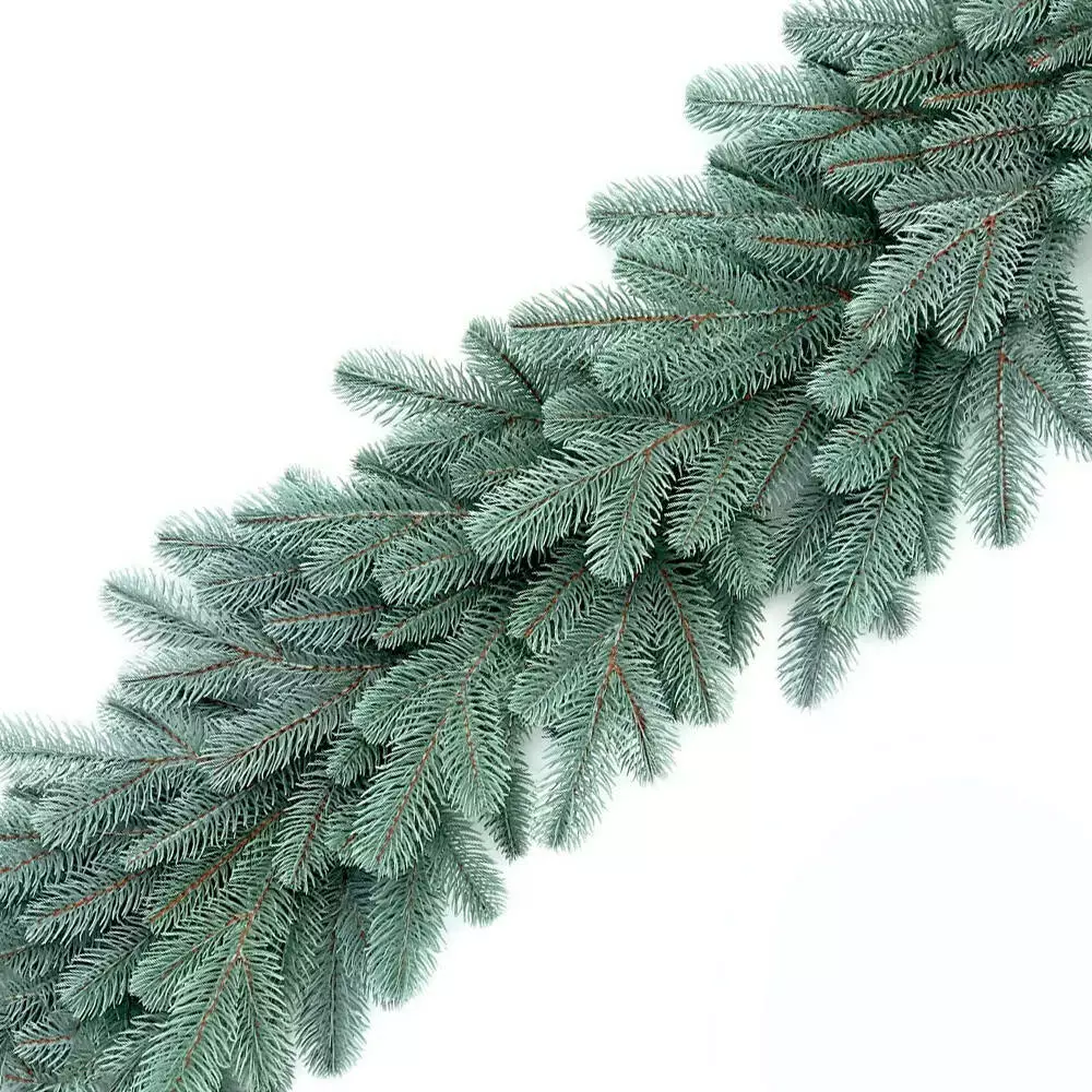 Хвойная гирлянда изготовлена путём переплетения искусственных еловых веточек. Все ветки и иголочки - 100% литые, они выглядят, как хвоя живой елки, но более мягкие и не колючие.