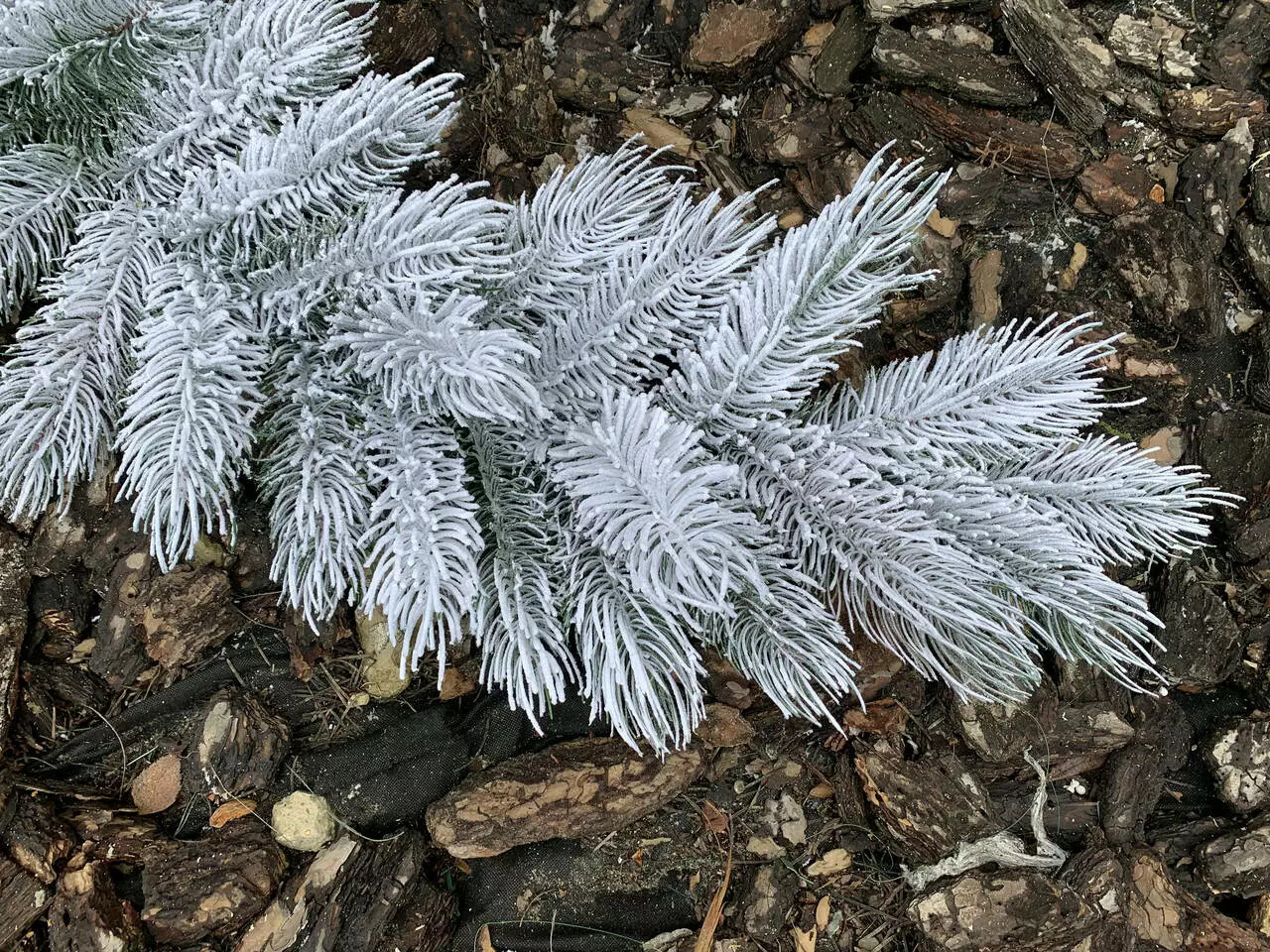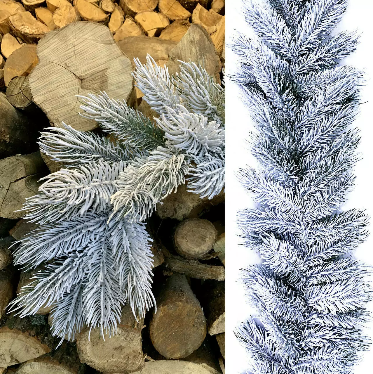 Хвойная гирлянда изготовлена путём переплетения искусственных сосновых веток. Все ветки пышные как у настоящей сосны засчёт длинной хвои. Объемное густое напыление реалистично имитирует снег, только что упавший на ветки пушистыми хлопьями. Материалом распыления является натуральный хлопок, он экологичен и не имеет запаха, безопасен для детей и взрослых.