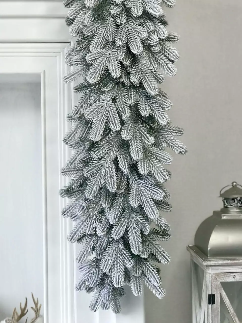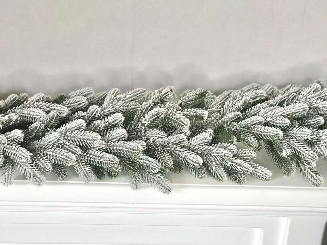 Хвойная гирлянда изготовлена путём переплетения искусственных еловых веточек. Все ветки и иголочки - 100% литые, они выглядят, как хвоя живой ёлки, но более мягкие и не колючие. Объемное густое напыление реалистично имитирует снег, только что упавший на ветки пушистыми хлопьями. Материалом распыления является натуральный хлопок, он экологичен и не имеет запаха, безопасен для детей и взрослых.