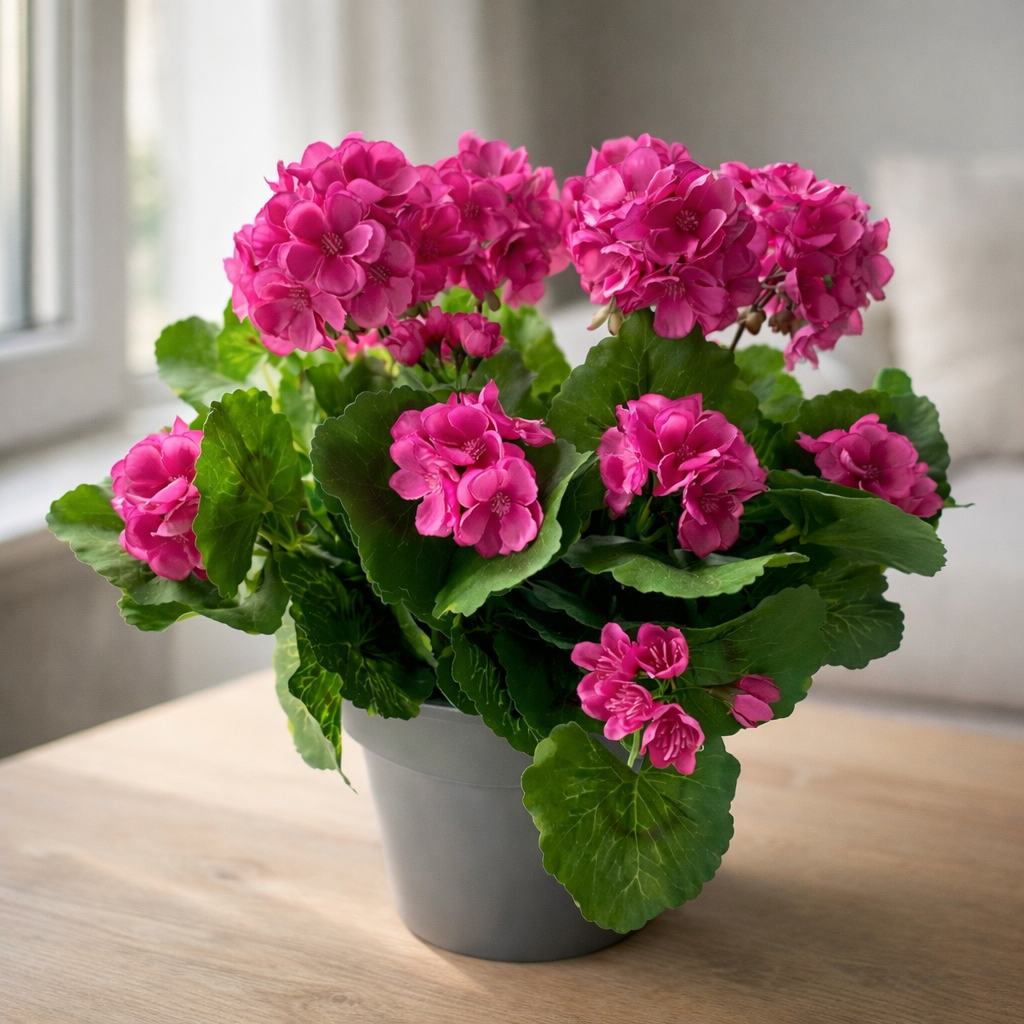Реалистичная искусственная пеларгония с плотными объёмными соцветиями и выразительной зеленью. Аккуратная форма, насыщенный цвет и естественный внешний вид делают её уместной как в жилом интерьере, так и в коммерческих пространствах.