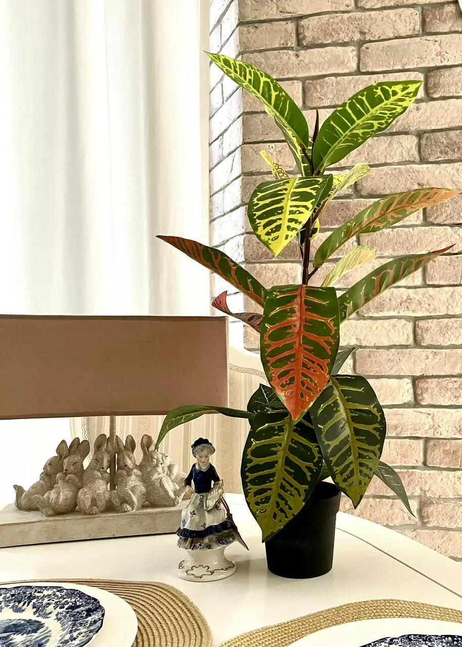 Изготовленный из передовых полимерных материалов, этот искусственный кротон восхитительно реалистичен. Каждый детально воссозданный лист, ствол и ветка делают его внешний вид почти неотличимым от настоящего растения. Вы больше не будете беспокоиться о поливе, удобрениях или освещении. Вам нужно всего лишь время от времени аккуратно очистить его от накопившейся пыли, чтобы сохранить идеальный вид вашего "растущего" кротона.