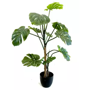 Это искусственное растение Монстера представлено в черном пластиковом горшке. Качество мельчайших деталей оказывает поразительный эффект живого растения. Гибкие стебли и листья позволяют разворачивать их и придавать любую форму.