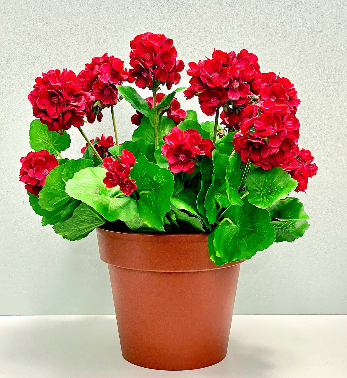 Пеларгония искусственная красная в терракотовом горшке 40 см, декоративное растение