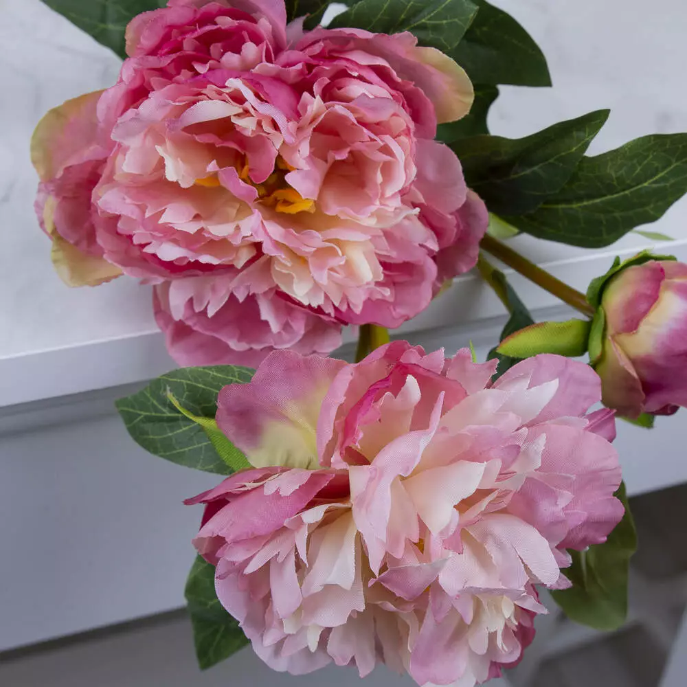 Пион искусственный розовый, тройная ветка 75 см – реалистичный цветок для декора и букетов