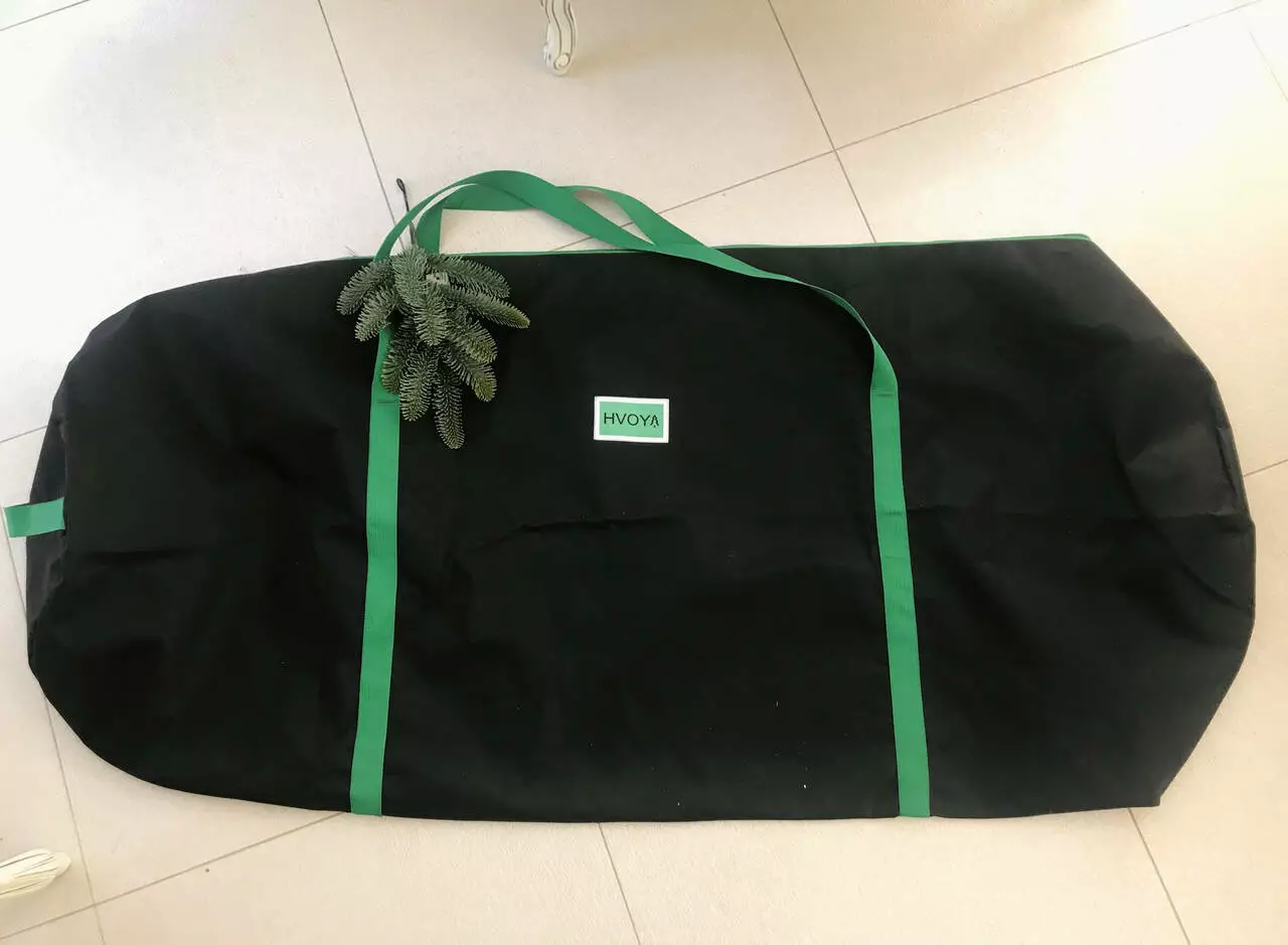 Сумка-чехол для хранения искусственной елки до 2.2 м чёрная с зелёными ручками
