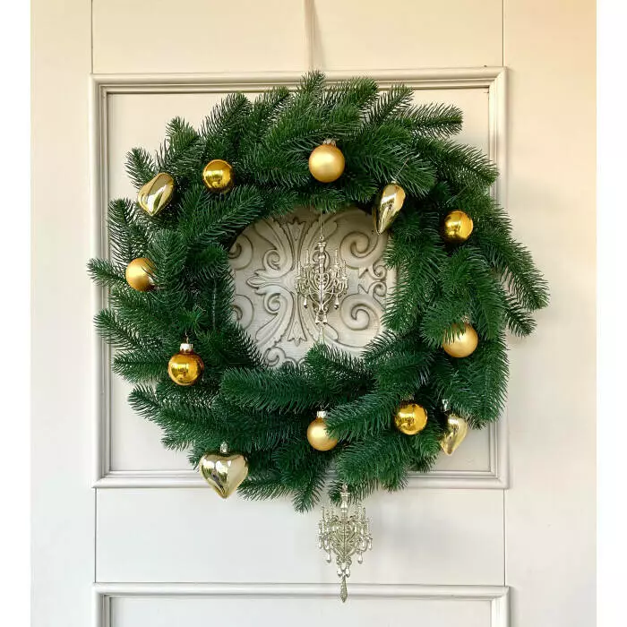 Венок диаметром 50 см идеально подходит для украшения входных дверей, окон, каминных полок или в качестве настольной композиции. Такой декор станет отличной основой для праздничных композиций — добавьте ленты, шишки или игрушки, чтобы подчеркнуть индивидуальность вашего интерьера.