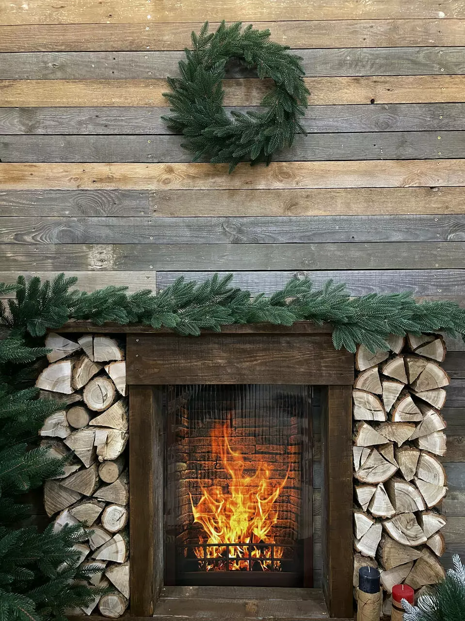 Повесьте его на межкомнатную дверь в гостиную или спальню. Внизу двери можно поставить светящийся фонарик или напольные вазы с хвойными ветками. Завершает общий облик хвойная гирлянда в том же стиле, оформленная в тех же тонах.