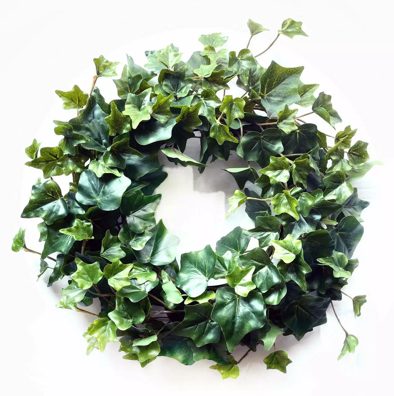 Изготовленный из высококачественного пластика и ткани, этот венок поражает своей реалистичностью. Натуральный зеленый цвет плюща придает аутентический вид. Наружный диаметр венка – 35 см.