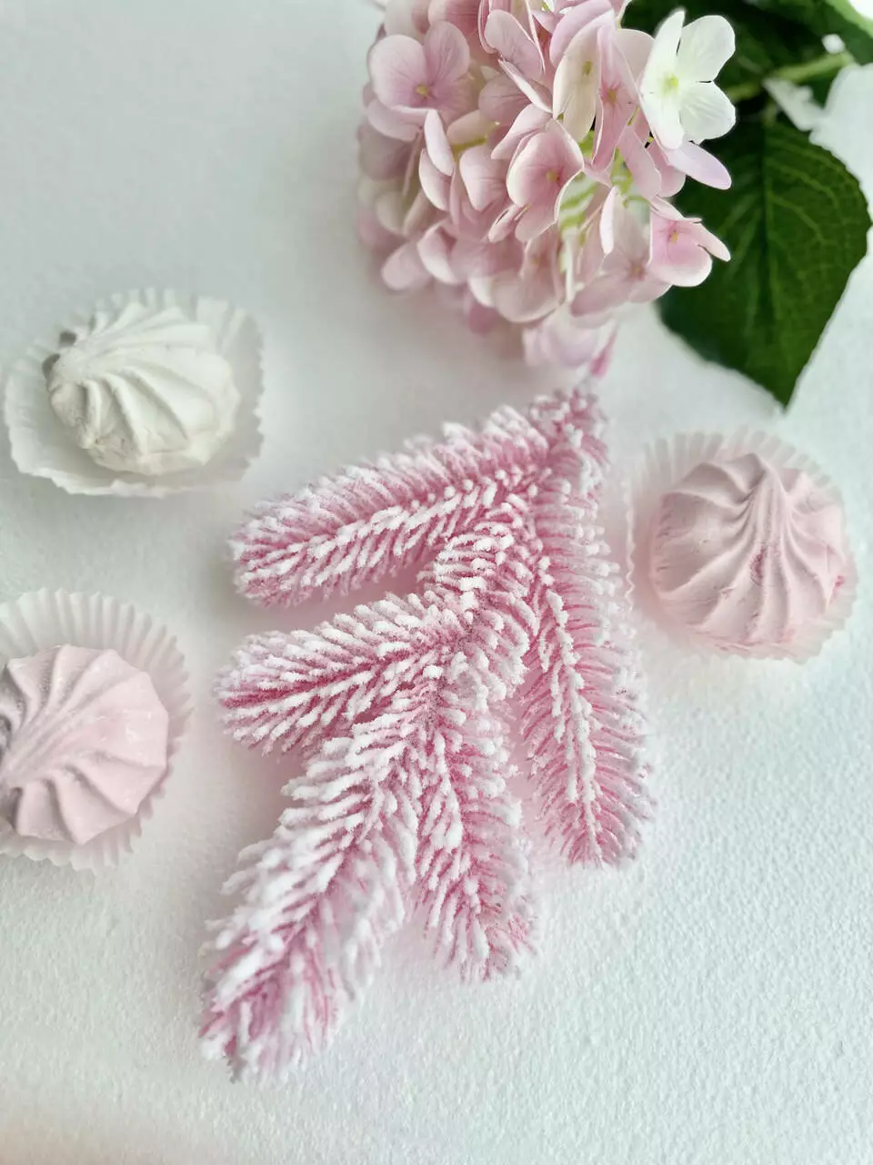 Нежная и воздушная, эта заснеженная литая веточка оттенка Marshmallow Pink словно розовый зефир, припорошенный снежной пудрой. Кажется, будто от неё исходит тонкий фруктово-ягодный аромат — настолько она визуально притягательна и аппетитна.