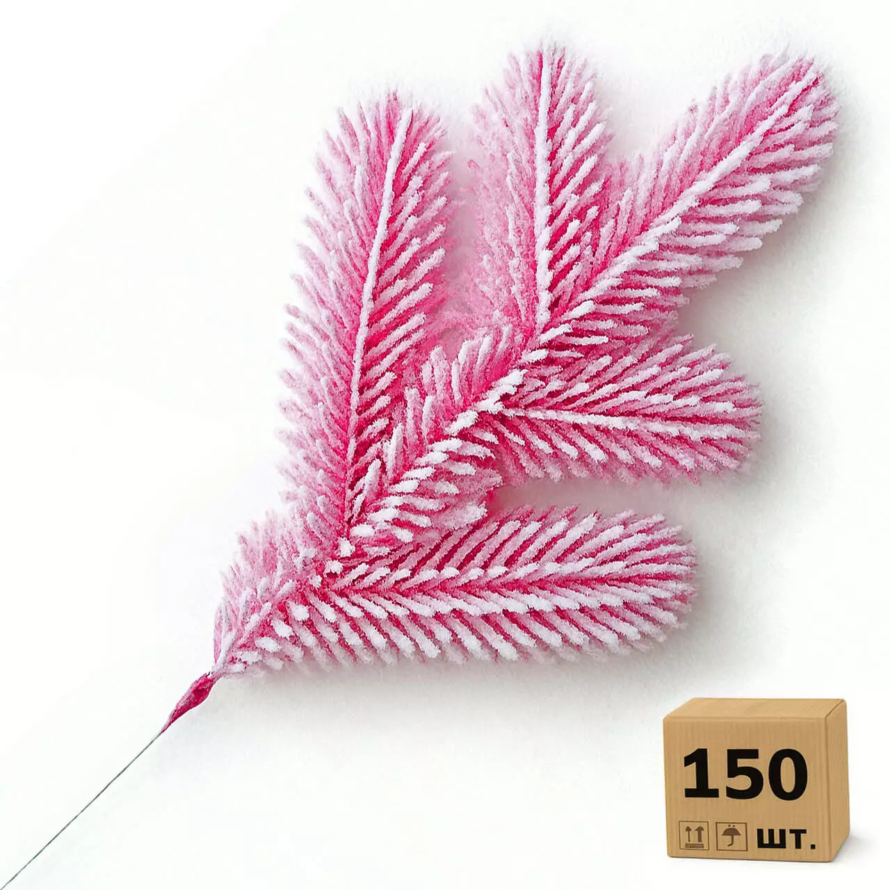 Ветка хвойная литая Lux Marshmallow Pink розовая заснеженная 33 см | ТМ HVOYA (150 шт.)