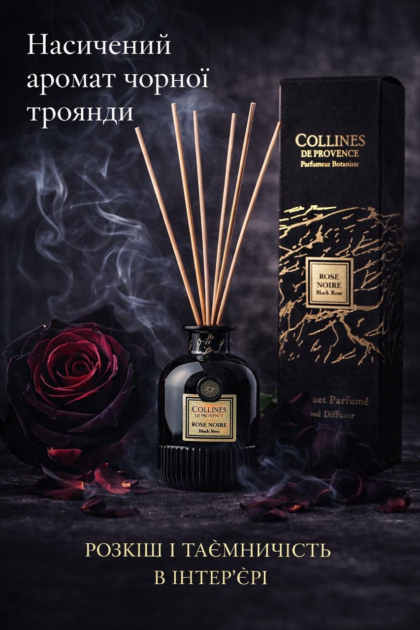 Аромадифузор Rose Noire від Collines de Provence — це глибокий і витончений аромат з характером, який наповнює простір атмосферою елегантності та легкої загадковості.