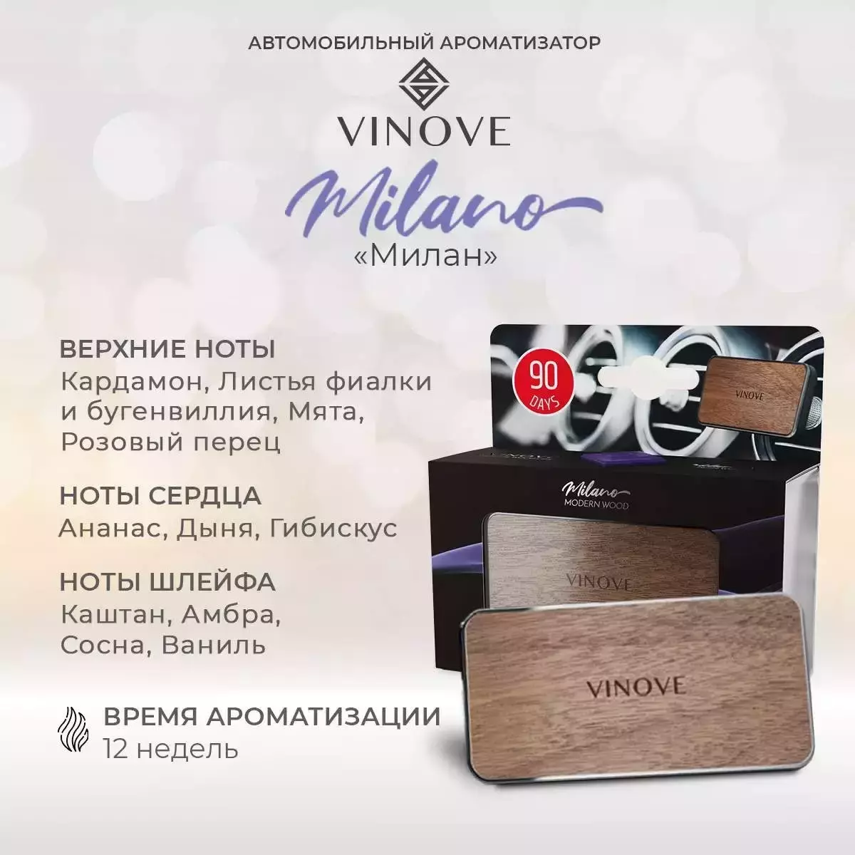 Ароматизатор в машину Vinove Мілан натуральна деревина