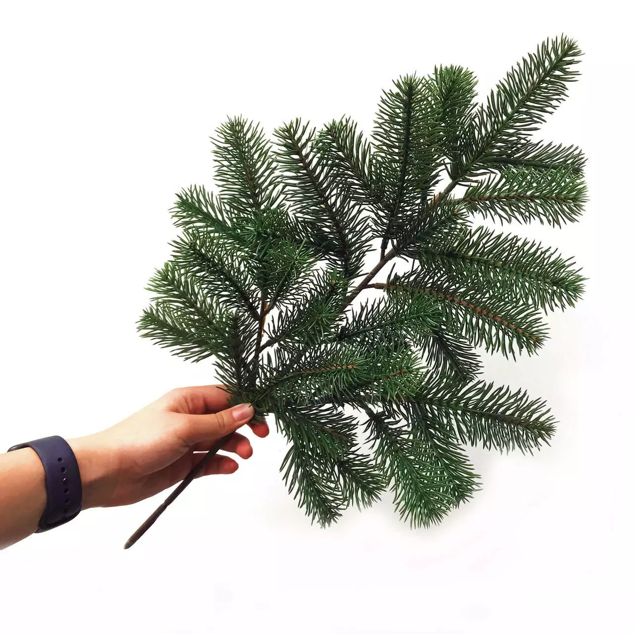 Гілка виготовлена зі 100% литого м'якого пластику (поліетилену) - голочки як у живої ялинки, але не колються і не обсипаються. Її можна поставити у вазу або використати для створення святкової композиції.
