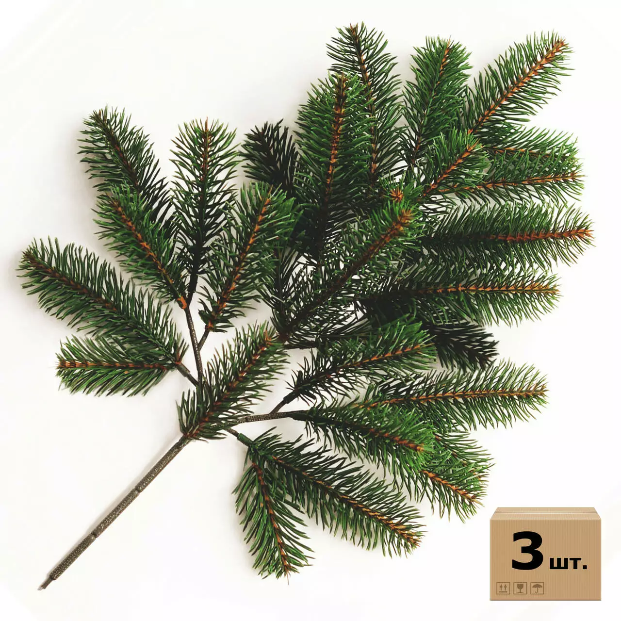 Гілка виготовлена зі 100% литого м'якого пластику (поліетилену) - голочки як у живої ялинки, але не колються і не обсипаються. Її можна поставити у вазу або використати для створення святкової композиції.