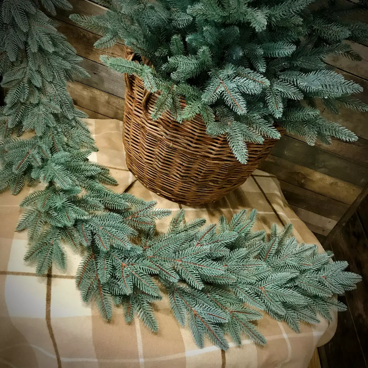 Хвойна гірлянда виготовлена шляхом переплетення штучних гілочок ялинки. Всі гілки і голочки - 100% литі, вони виглядають, як хвоя живої ялинки, але м'якші і не колючі.