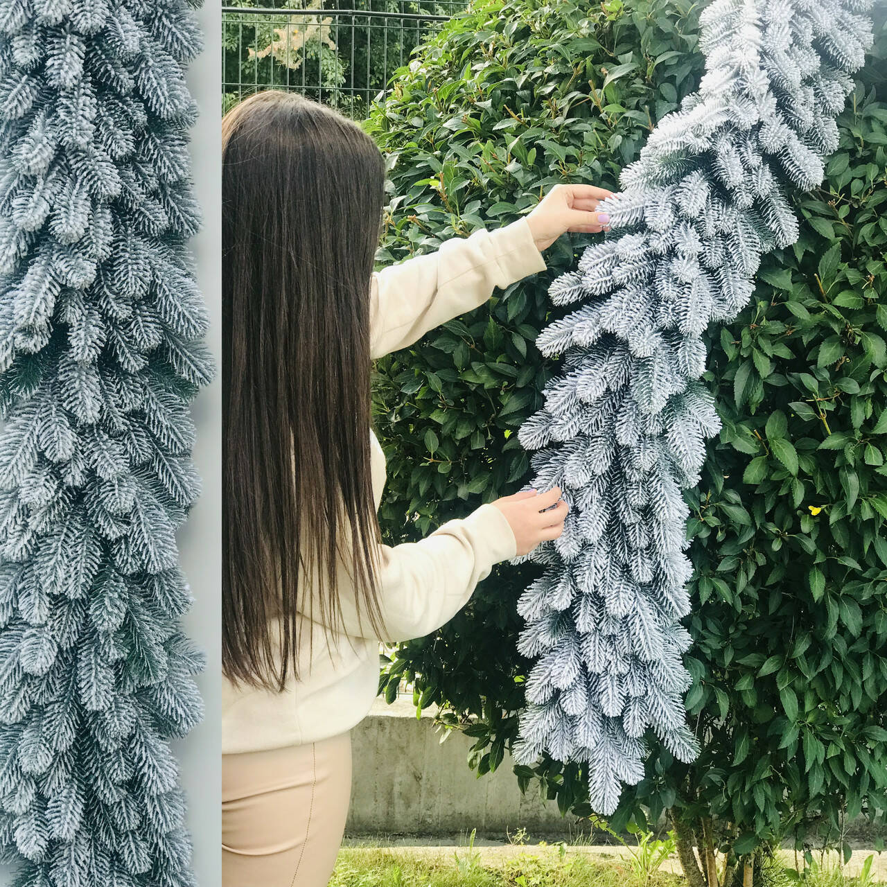 Хвойна гірлянда виготовлена шляхом переплетення штучних гілочок ялинки. Всі гілки і голочки - 100% литі, вони виглядають, як хвоя живої ялинки, але м'якші і не колючі.