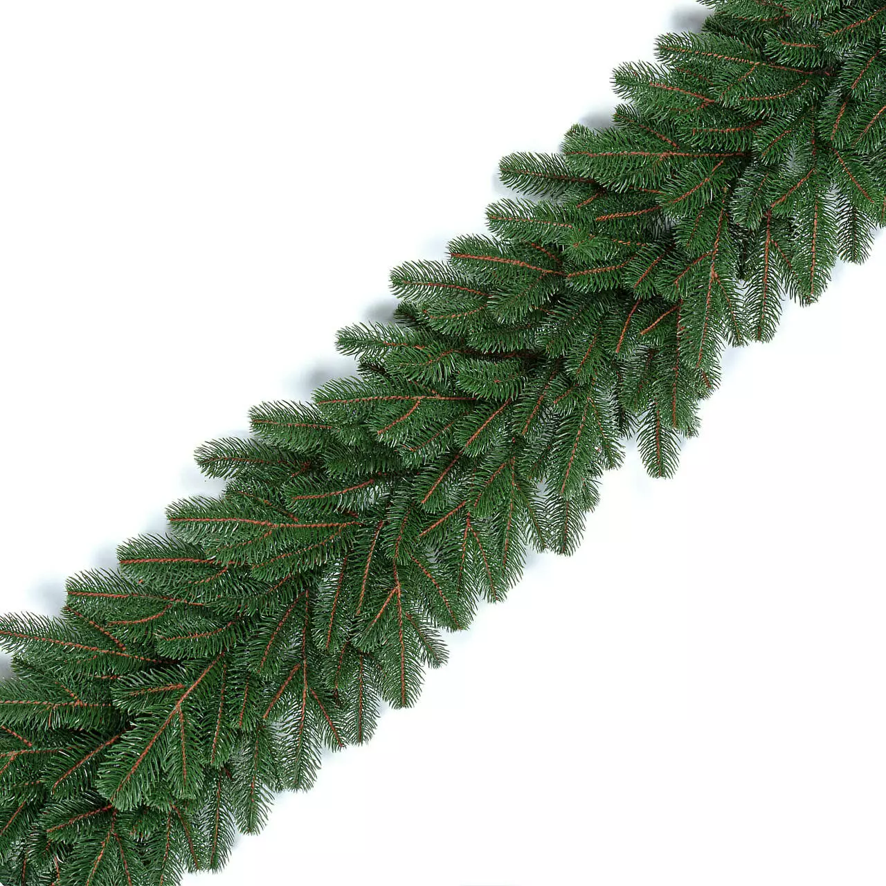 Хвойна гірлянда виготовлена шляхом переплетення штучних гілочок ялинки. Всі гілки і голочки - 100% литі, вони виглядають, як хвоя живої ялинки, але м'якші і не колючі.