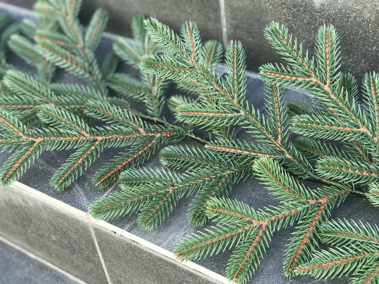 Хвойна гірлянда виготовлена шляхом переплетення штучних гілочок ялинки. Всі гілки і голочки - 100% литі, вони виглядають, як хвоя живої ялинки, але м'якші і не колючі.