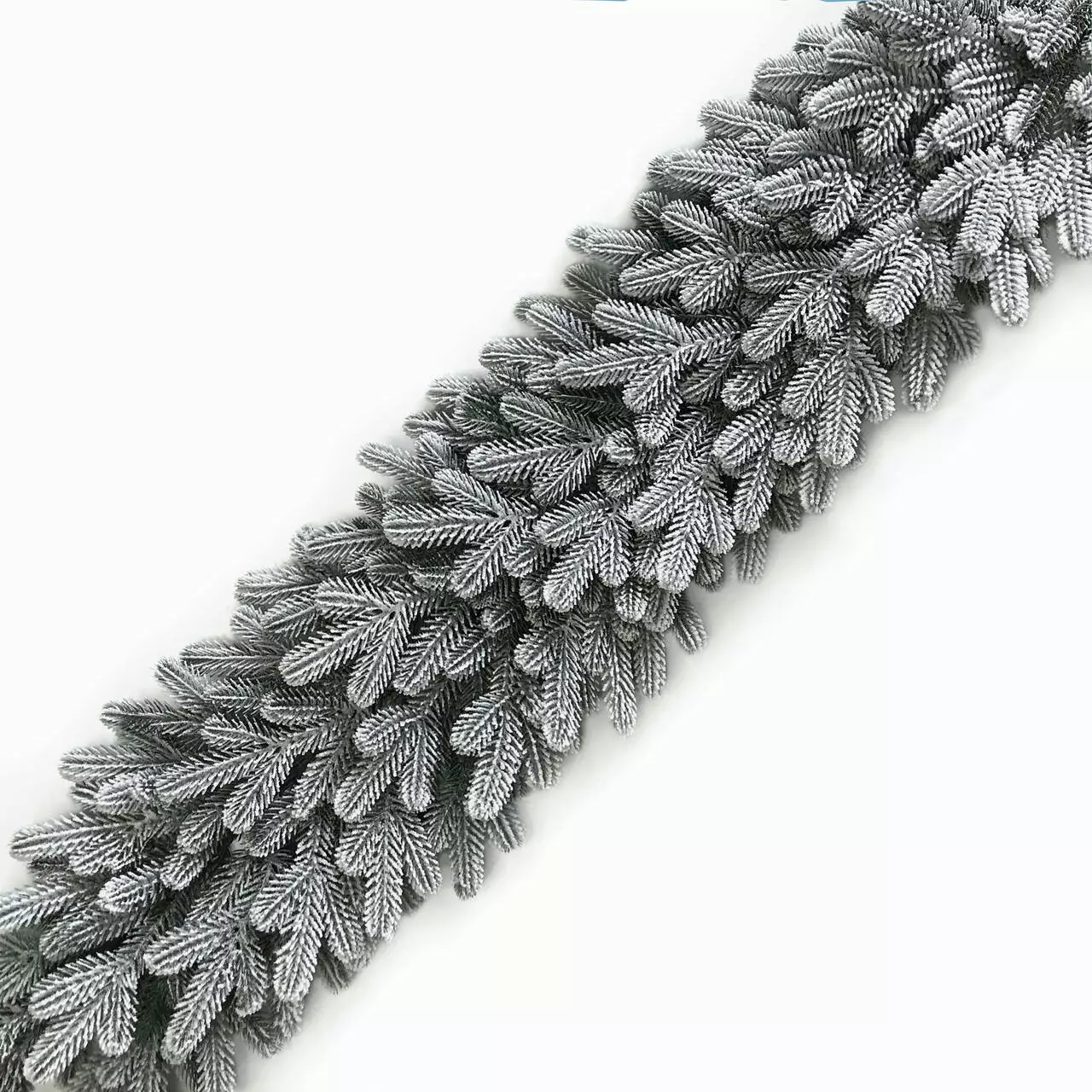Хвойна гірлянда виготовлена з переплетених штучних ялинових гілочок. Всі гілки і голочки - 100% литі, вони виглядають, як хвоя живої ялинки, але м'якші і не колючі. Об'ємне густе напилення реалістично імітує сніг, який щойно впав на гілки пухнастими пластівцями. Матеріалом розпилення є натуральна бавовна, вона екологічна і не має запаху, безпечна для дітей і дорослих.