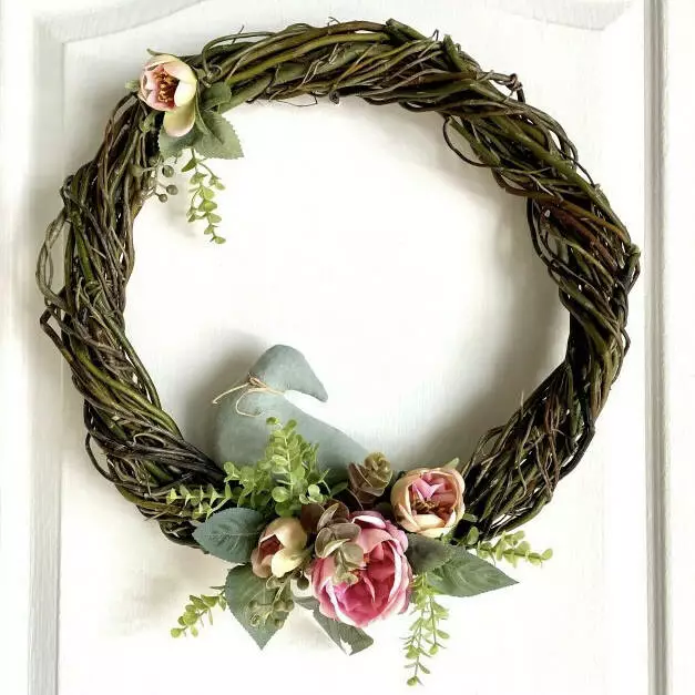 Особливим акцентом є пташка, виготовлена вручну, яка додає вінку унікальності та шарму. Цей вінок стане чудовим доповненням до вашого інтер'єру, створюючи атмосферу затишку та гармонії в вашому домі.