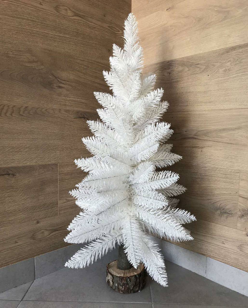 Стильна біла ялинка HVOYA Elegant на пні висотою 85 см допоможе створити оригінальний і креативний дизайн святкового інтер'єру.