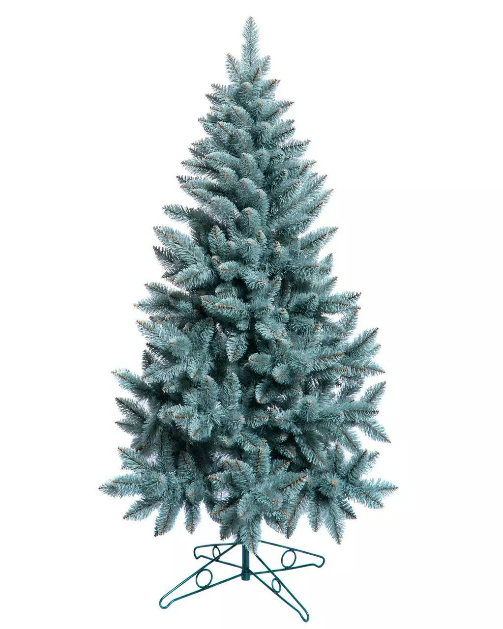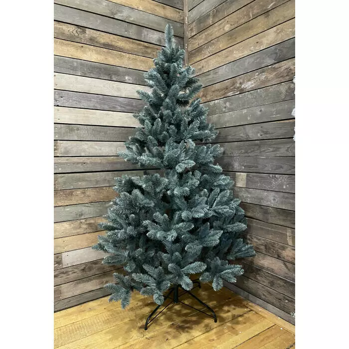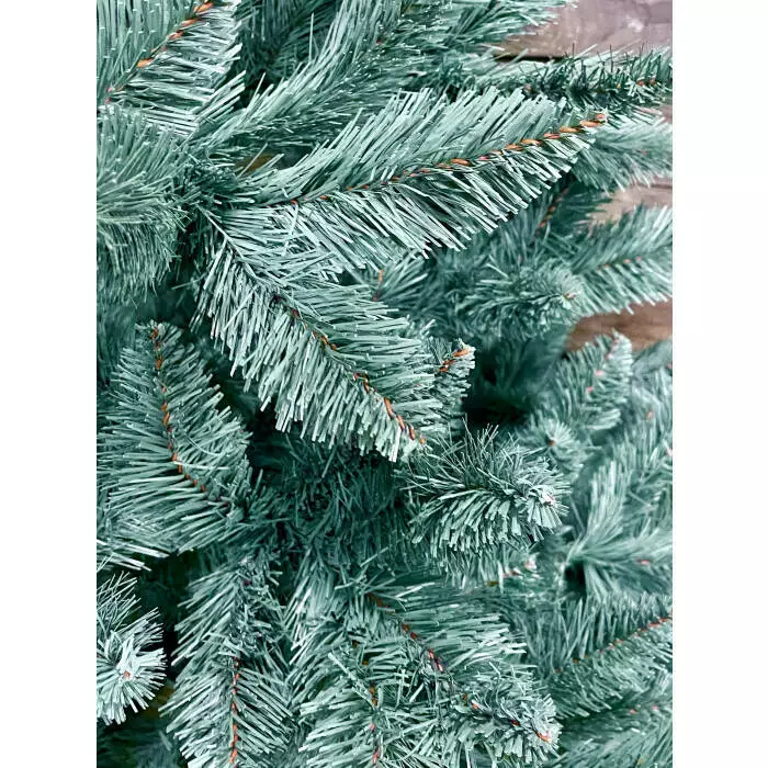 Надзвичайно пишна новорічна красуня. Густі гілки з чотирьох шарів полімерної плівки мають гарну загострену на кінчиках форму. Хвоя благородного блакитного кольору, як у живої ялинки.