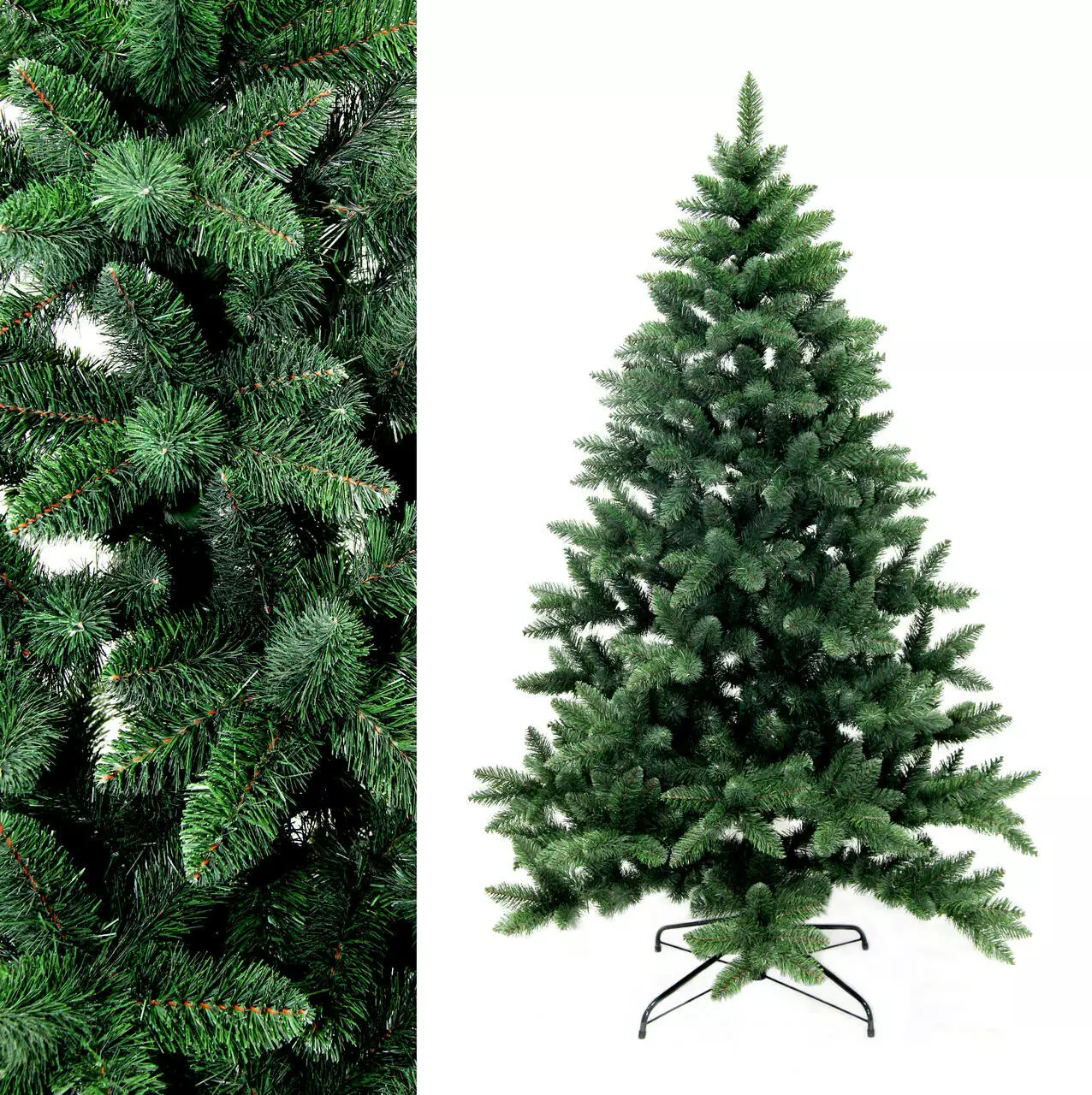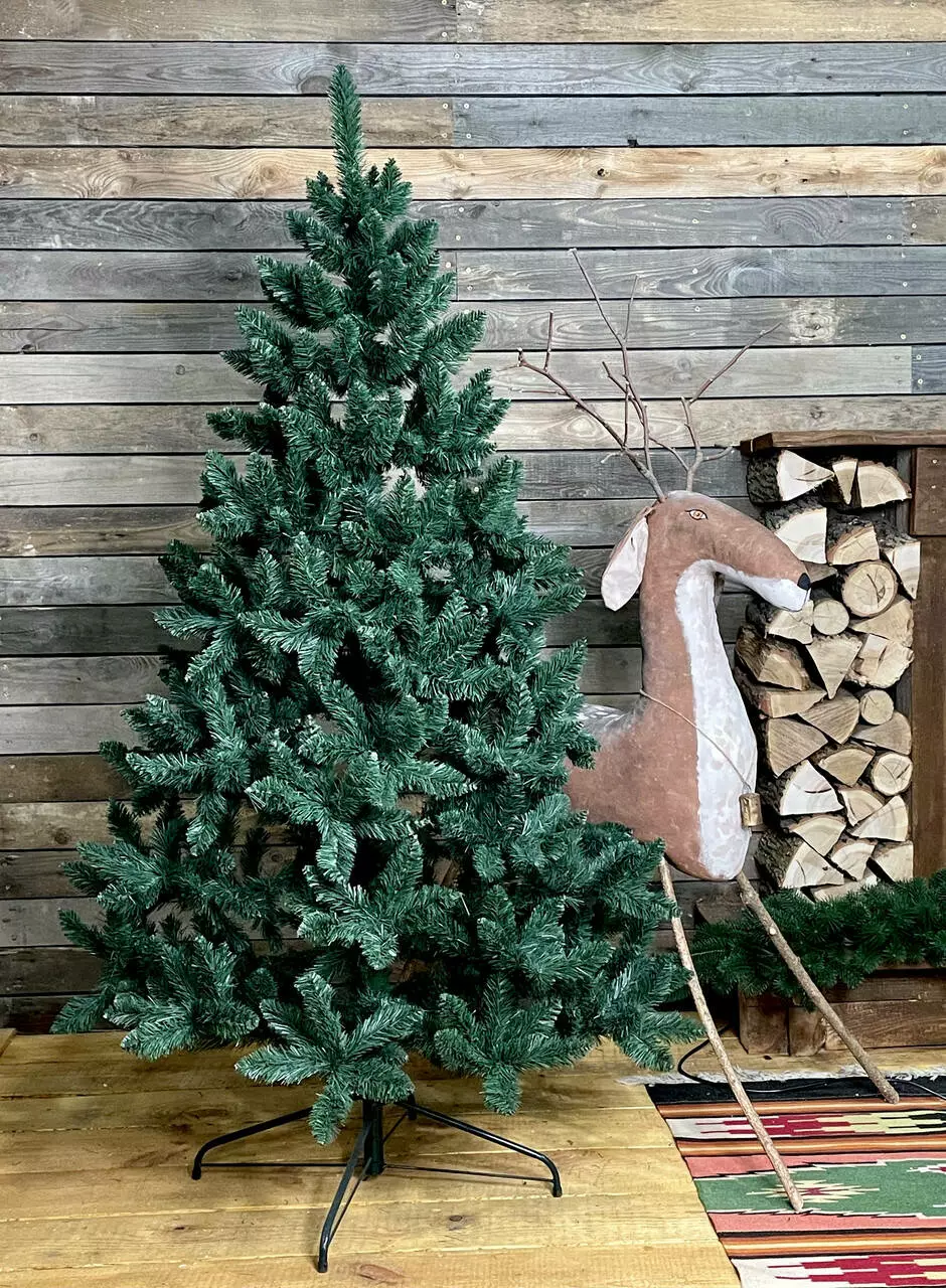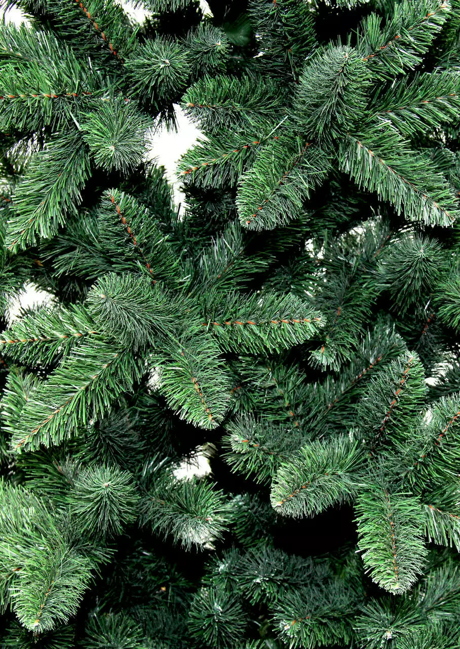 Надзвичайно пишна новорічна красуня. Густі гілки з чотирьох шарів полімерної плівки мають гарну загострену на кінчиках форму. Хвоя зеленого кольору, а серединка гілки коричнева, як у живої ялинки.
