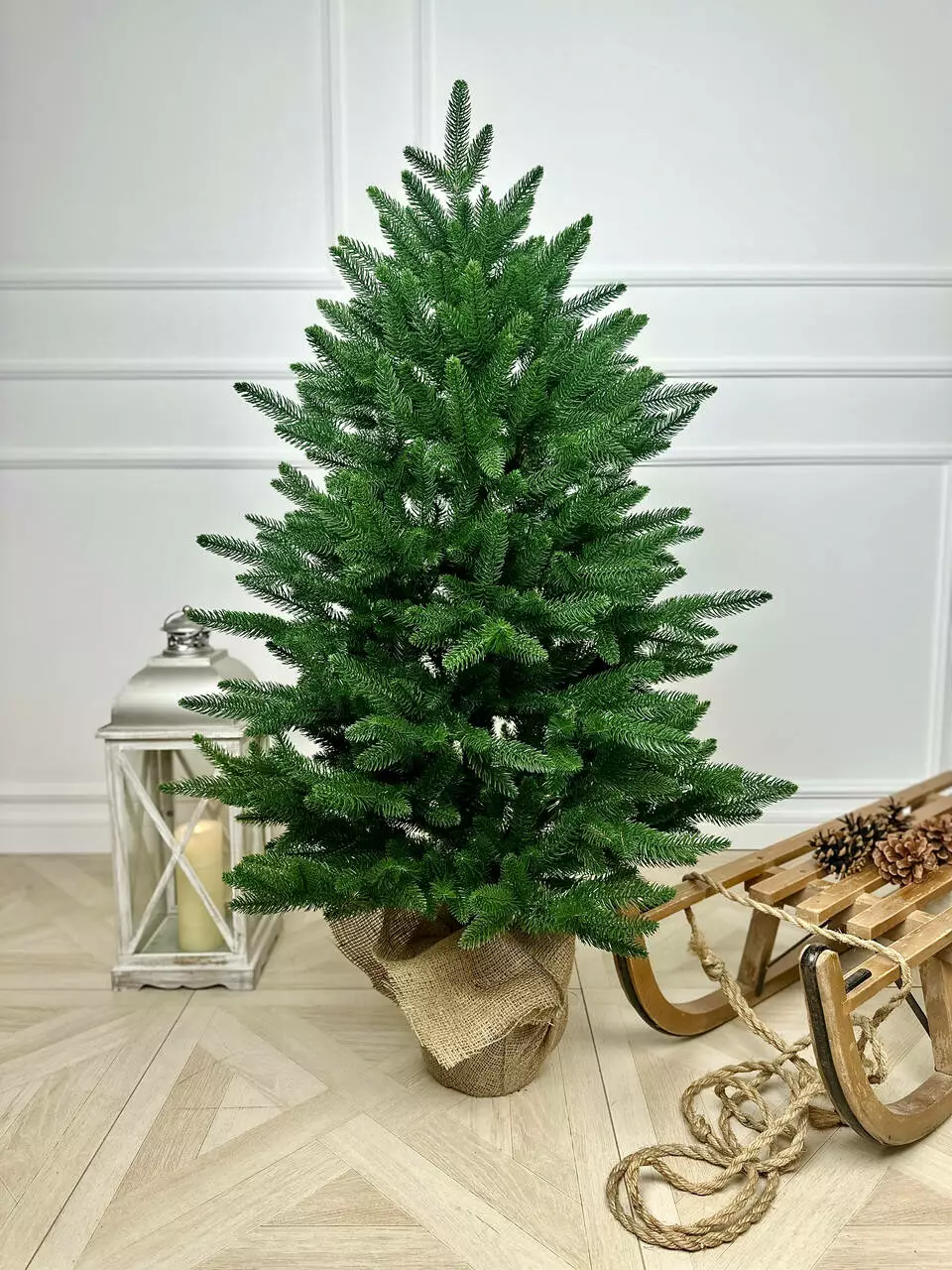 Штучна новорічна ялинка лита Classic, оздоблена мішковиною, 120 см, зелена