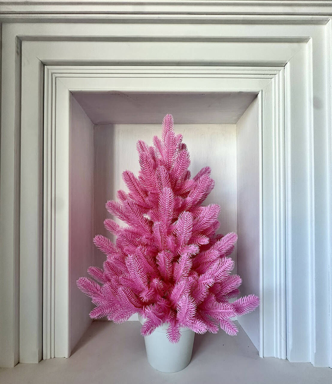 Компактний розмір робить цю рожеву ялинку ідеальним вибором для настільного декору, комода, тумби чи підвіконня. Вона чудово підходить для оформлення квартири, дитячої кімнати для маленьких принцес, фотозони, вітрини магазину, салону краси, шоуруму, кав’ярні або офісного простору. Така ялинка одразу привертає увагу та створює атмосферу стилю й свята.