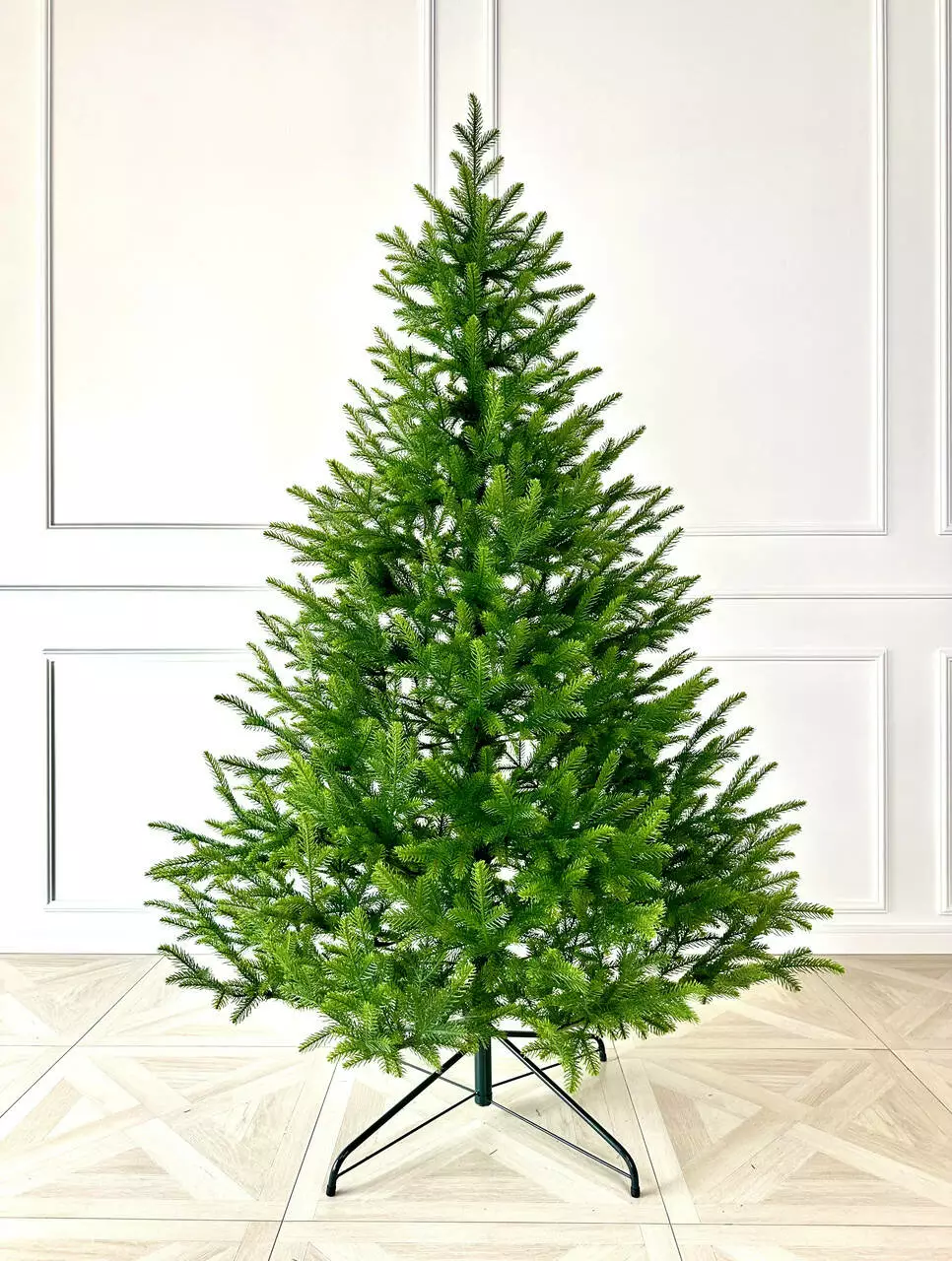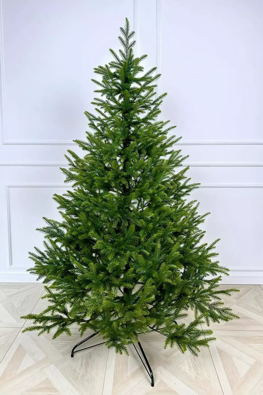 Лита хвоя — головна перевага цієї моделі. Вона м’яка на дотик, не осипається, тримає форму та колір роками. Зелені гілочки з салатовими кінчиками виглядають так, ніби ялинка щойно з лісу, але при цьому не потребує догляду. Реалістична текстура та правильна щільність розташування гілок дозволяють розмістити іграшки, гірлянди й святкові аксесуари будь-якої ваги.