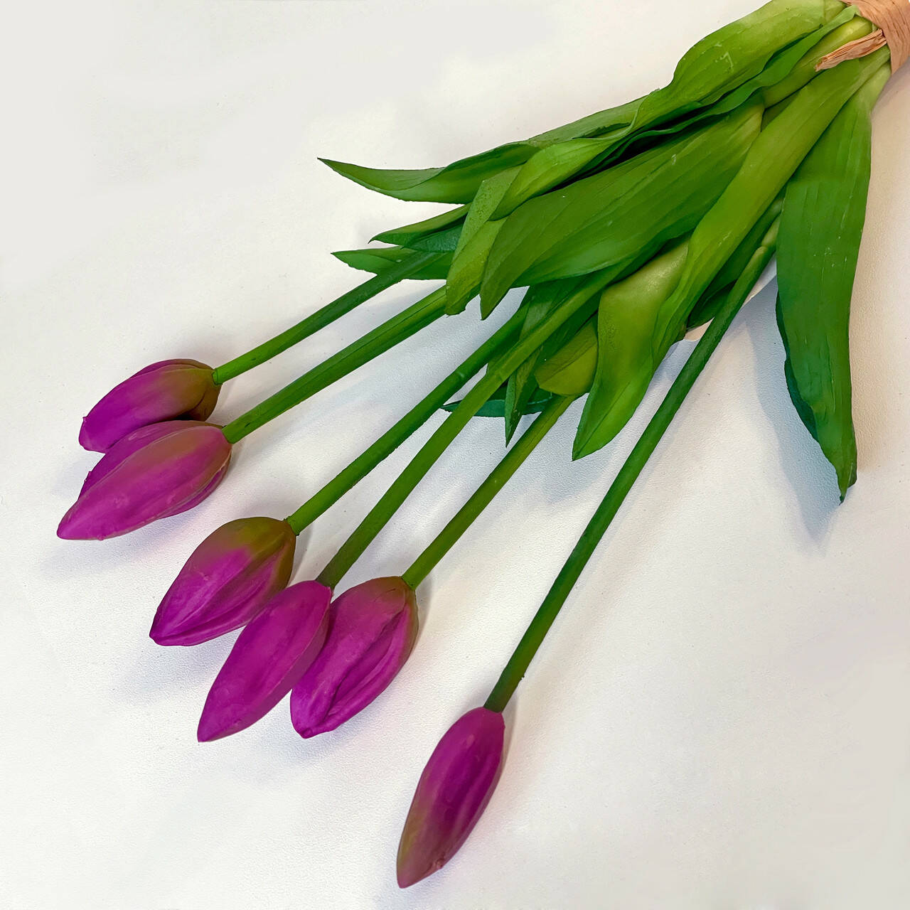 Штучні латексні тюльпани фіолетові, букет з 7 закритих бутонів Real Touch