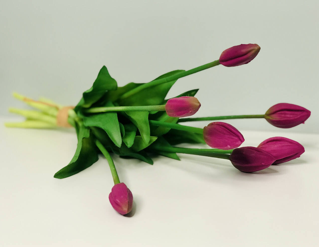 Букет штучних латексних тюльпанів із закритими бутонами – це вишукана весняна композиція, що стане чудовим доповненням до інтер'єру та стильним подарунком. Завдяки реалістичному вигляду, ніжній текстурі та ефекту Real Touch, ці квіти виглядають і відчуваються майже як справжні.