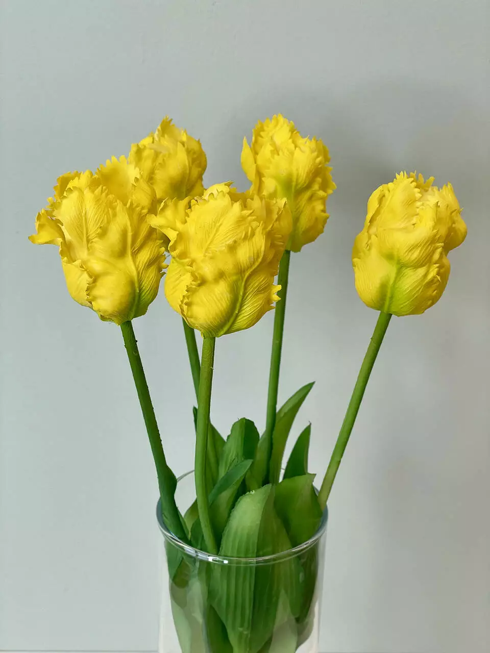 Штучні тюльпани латексні махрові 5 шт. жовті Real Touch, букет для декору, подарунок.