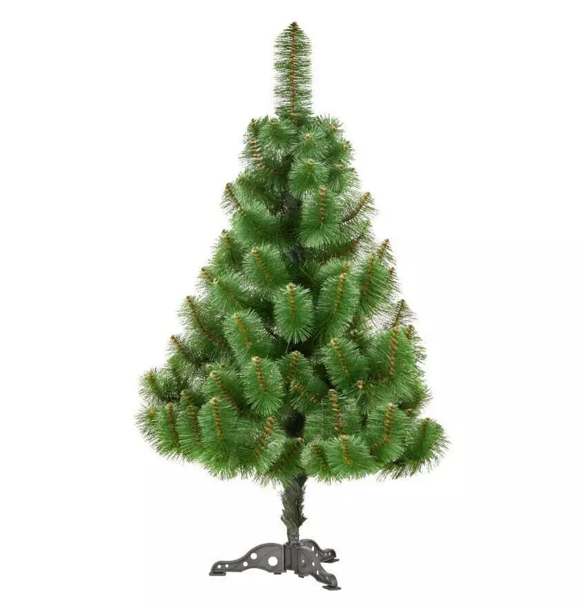 Конструкція: сталевий стовбур, на якому кріпляться гілки з такою ж дроту. Модель з легкістю встановлюється: треба просто розпрямити гілки, вставити стовбур дерева в ніжки підставки і розвісити іграшки. Підставка стійка, сосна не перекидається, навіть коли щедро прикрашена іграшками і мішурою.