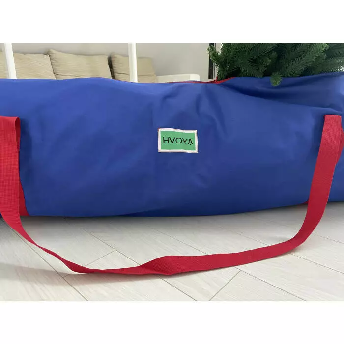 Усередині чохла є кишеня, в яку можна покласти складену підставку для ялинки, гірлянди, мішуру або ще щось на ваш розсуд. Зверху чохла є надійна ручка-петля, яка дозволяє підвісити чохол та зберігати ялинку у вертикальному положенні.