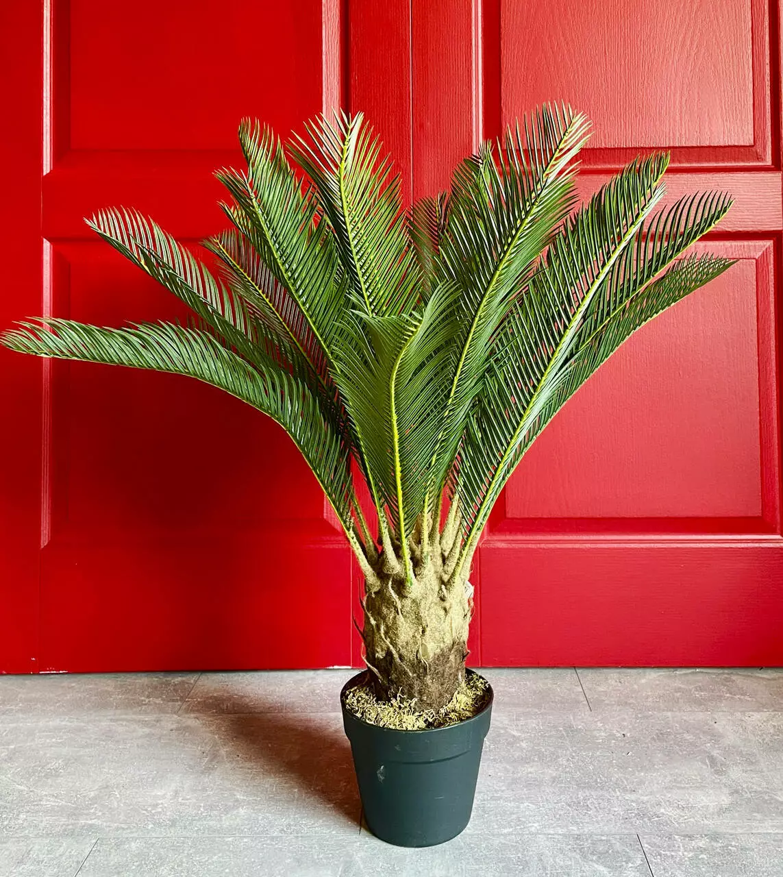 Штучний цикас висотою 85 см виготовлений з високоякісних матеріалів, що імітують текстуру та колір справжньої рослини. Його міцне стебло та щільні листя стійкі до вигоряння та деформацій, що забезпечує довговічність і незмінний вигляд протягом багатьох років. Горщик, у якому розташований цикас, стильно оформлений і гармонійно доповнює зовнішній вигляд рослини, роблячи її чудовим декоративним елементом для будь-якого приміщення.