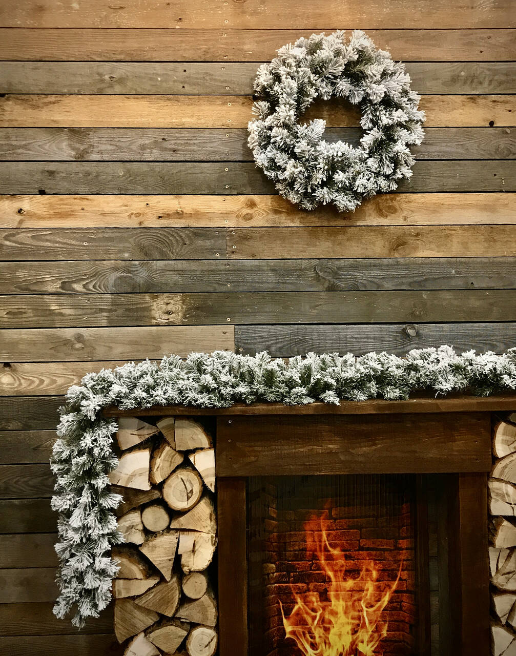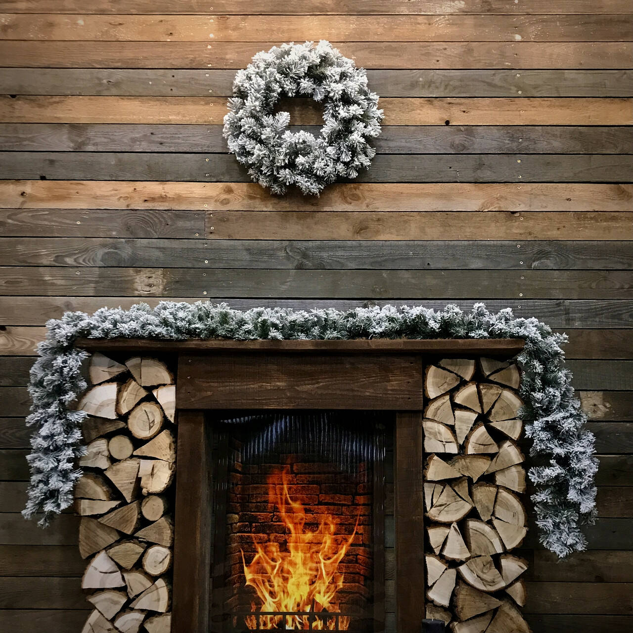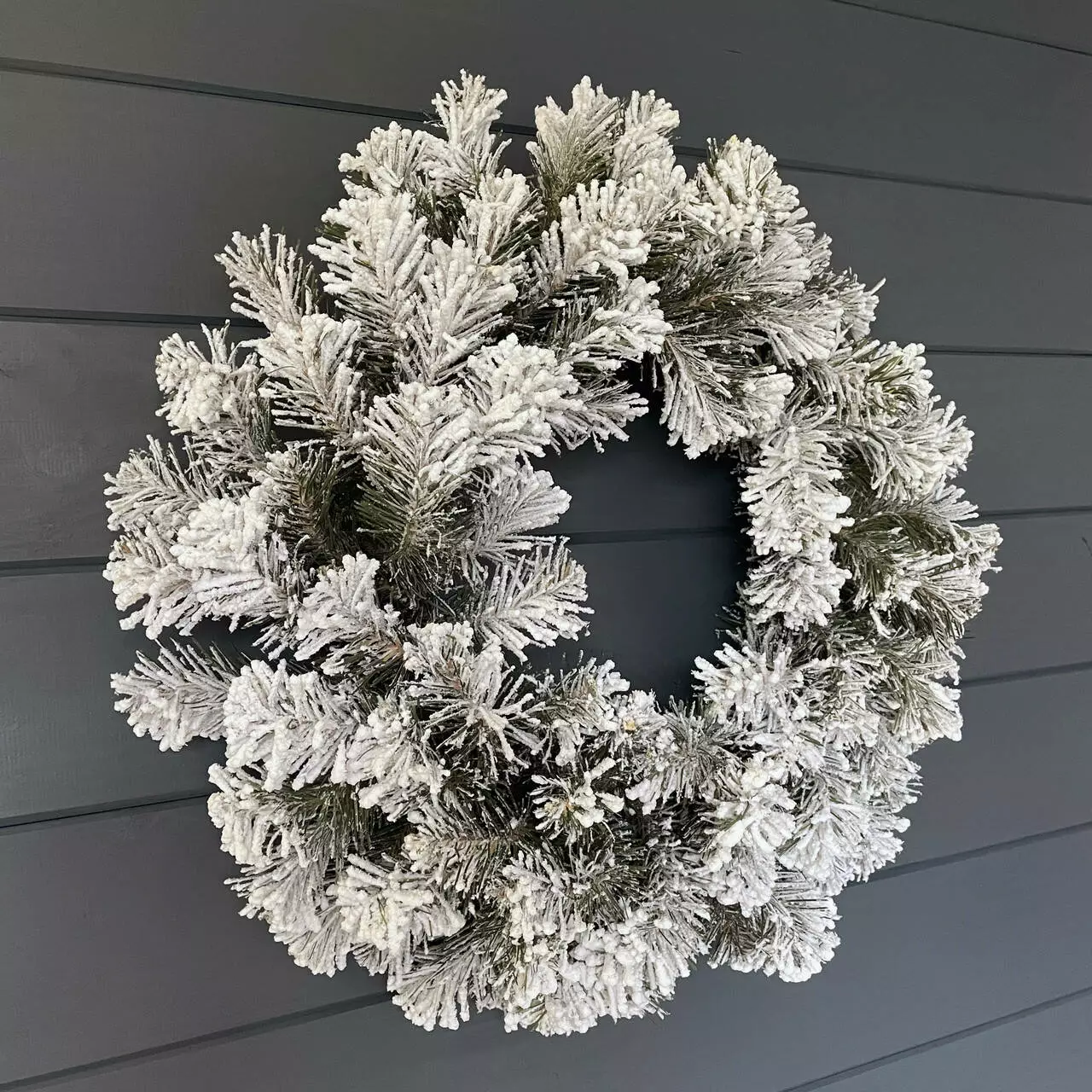 Об'ємне густе напилення на вінку, реалістично імітує сніг, який щойно впав на гілки пухнастими пластівцями. Матеріалом розпилення є натуральна бавовна, вона екологічна і не має запаху, безпечна для дітей і дорослих.