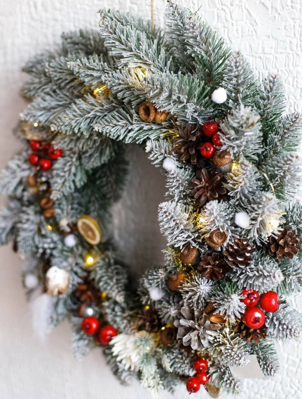 Вінок новорічний різдвяний Elegant зі штучної хвої d-50 см засніжений