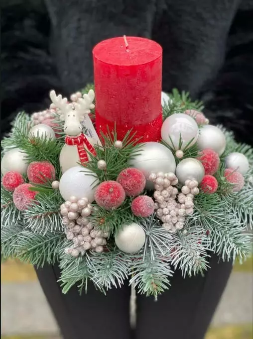 Найпоширеніший варіант - прикрашання вхідних дверей. Повісьте хвойний вінок на міжкімнатні двері у вітальню або спальню. Ви можете купити будь-який новорічний ялиновий вінок і просто повісити його з зовнішнього боку дверей. Або проявити фантазію і прикрасити додавши на свій смак банти, дзвіночки, кульки або дерев'яні підвіски, сніжинки або кілька гілок ягід. Або прикрасити декількома дольками декоративного апельсина, паличками кориці, шишечками. Варіантів може бути безліч, придумуйте різдвяну композицію разом з дітьми, вони теж захочуть проявити фантазію. Внизу двері можна поставити світиться ліхтарик або вази з хвойними гілками. Завершує загальний вигляд хвойна гірлянда в тому ж стилі, оформлена в тих самих тонах.
