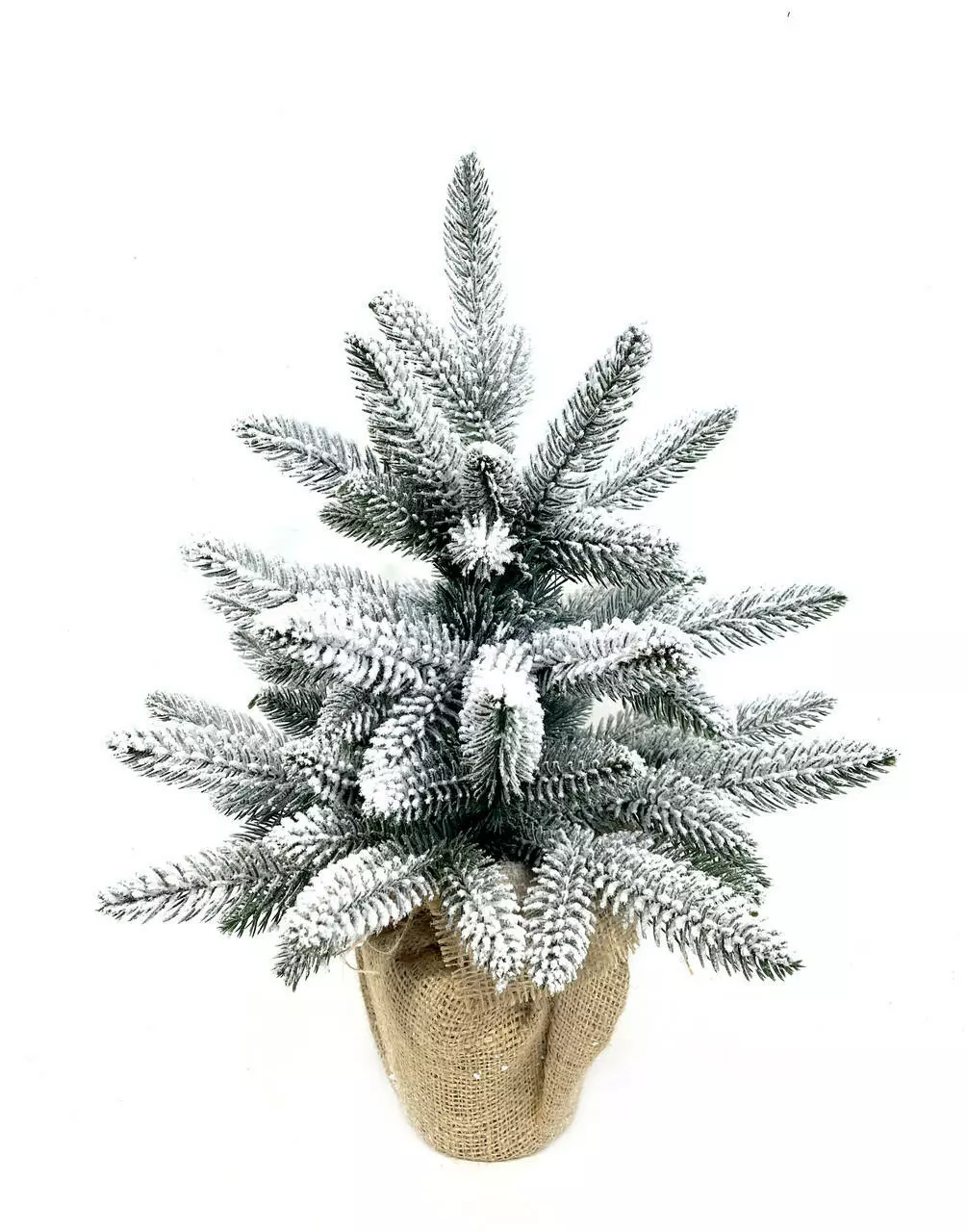 Компактна штучна лита ялинка виглядає ошатно навіть без додаткових прикрас. Всі голочки - литі, точна 3D імітація хвої живої ялинки. Встановлена у горщик, прикрашений мішковиною, з обважнювачем всередині - для захисту від перекидання. Об'ємне густе напилення на ялинці реалістично імітує сніг, який тільки що впав на гілки пухнастими пластівцями. Матеріалом розпилення є натуральна бавовна, він екологічний і не має запаху, безпечний для дітей і дорослих.