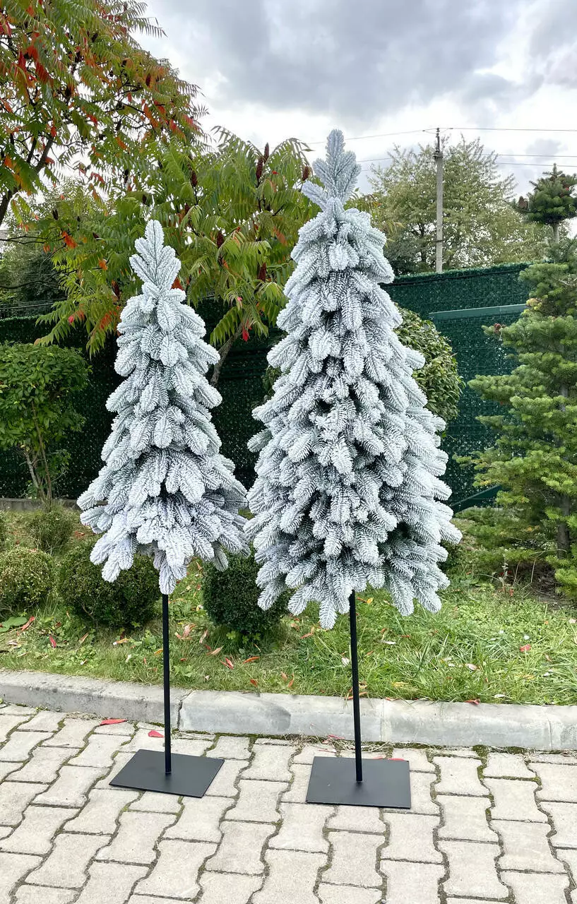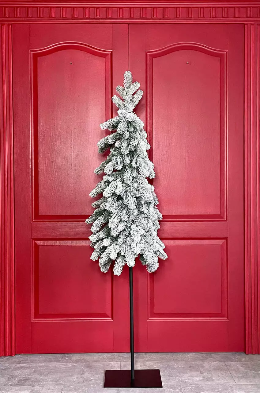 Ялинка HVOYA Style Lux вузька лита на високому металевому стовбурі - підставці 160 см засніжена