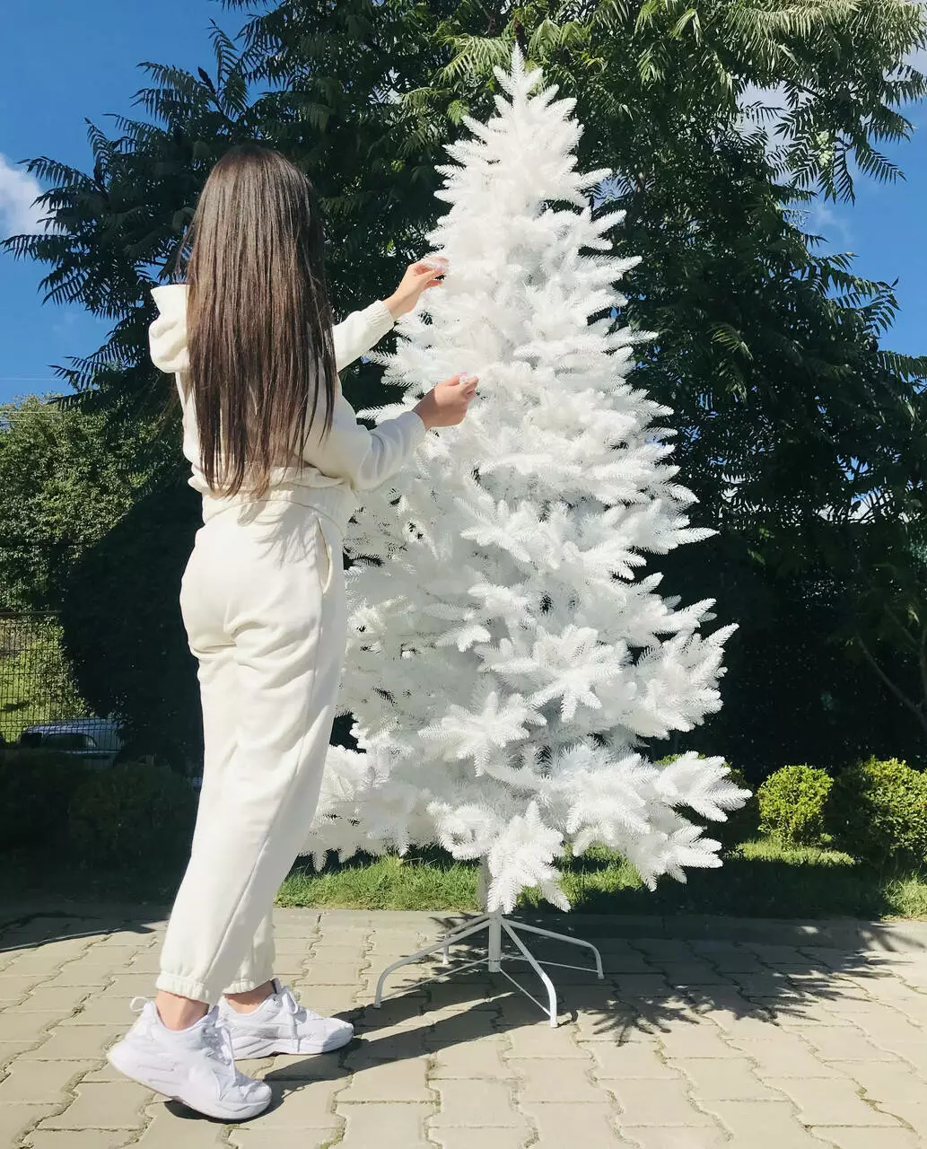 Біла ялинка - вже сама по собі прикраса, тому не вимагає якихось незвичайних ялинкових іграшок та мішури. Біла ялинка виглядає завжди красиво, нестандартно, стильно, приємно-повітряно і, що важливо, вписується практично в будь-який, і не обов'язково світлий інтер'єр. Часто дизайнери, що прикрашають білі ялинки, застосовують один свій улюблений прийом – монохром і вибирають білі іграшки або максимально близькі за кольором до білих – прозорі, молочні, срібні, світло-рожеві тощо.