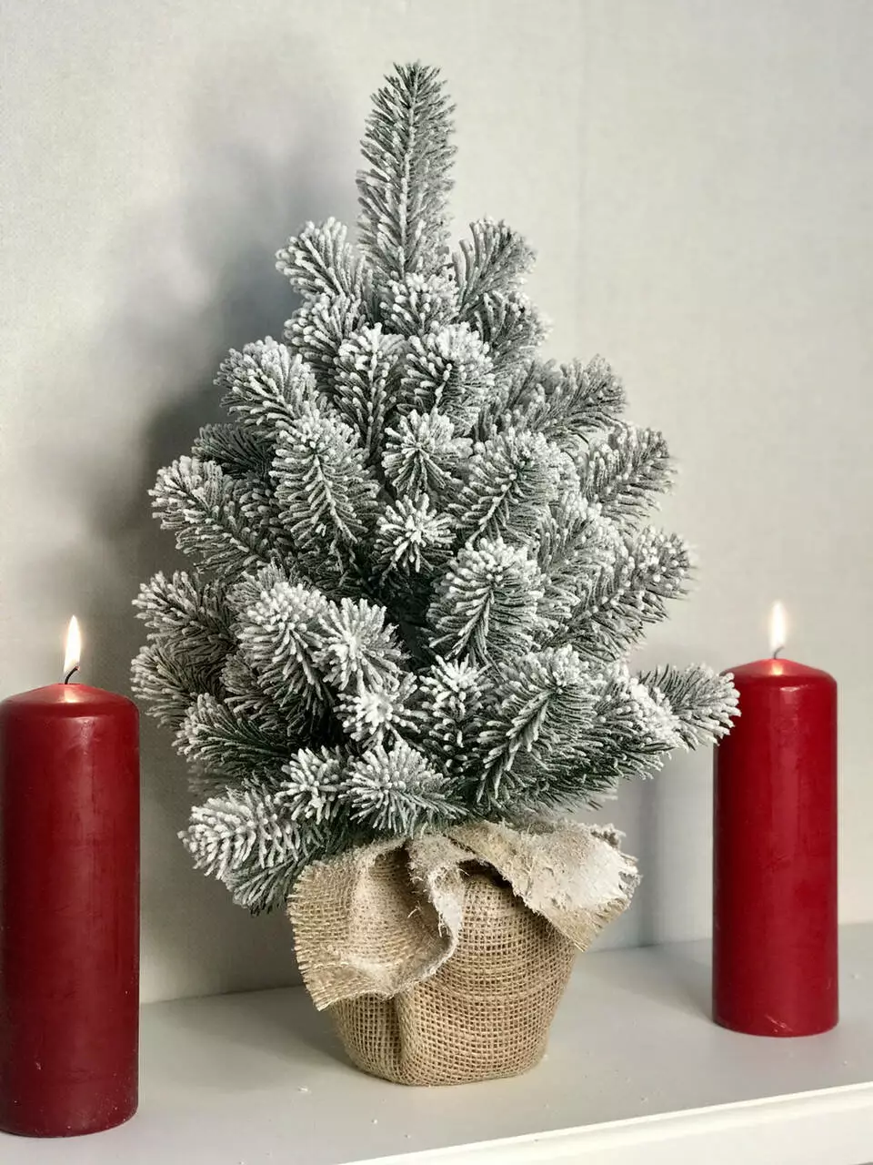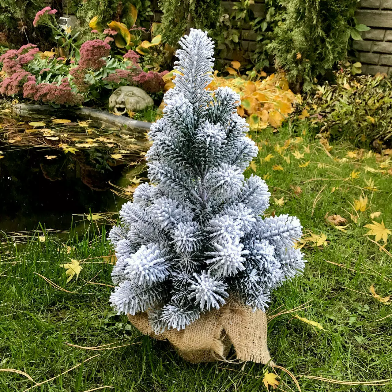 Компактна штучна лита ялинка виглядає ошатно навіть без додаткових прикрас. Всі голочки - литі, точна 3D імітація хвої живої ялинки. Встановлена у горщик, прикрашений мішковиною, з обважнювачем всередині - для захисту від перекидання. Об'ємне густе напилення на ялинці реалістично імітує сніг, який тільки що впав на гілки пухнастими пластівцями. Матеріалом розпилення є натуральна бавовна, він екологічний і не має запаху, безпечний для дітей і дорослих.