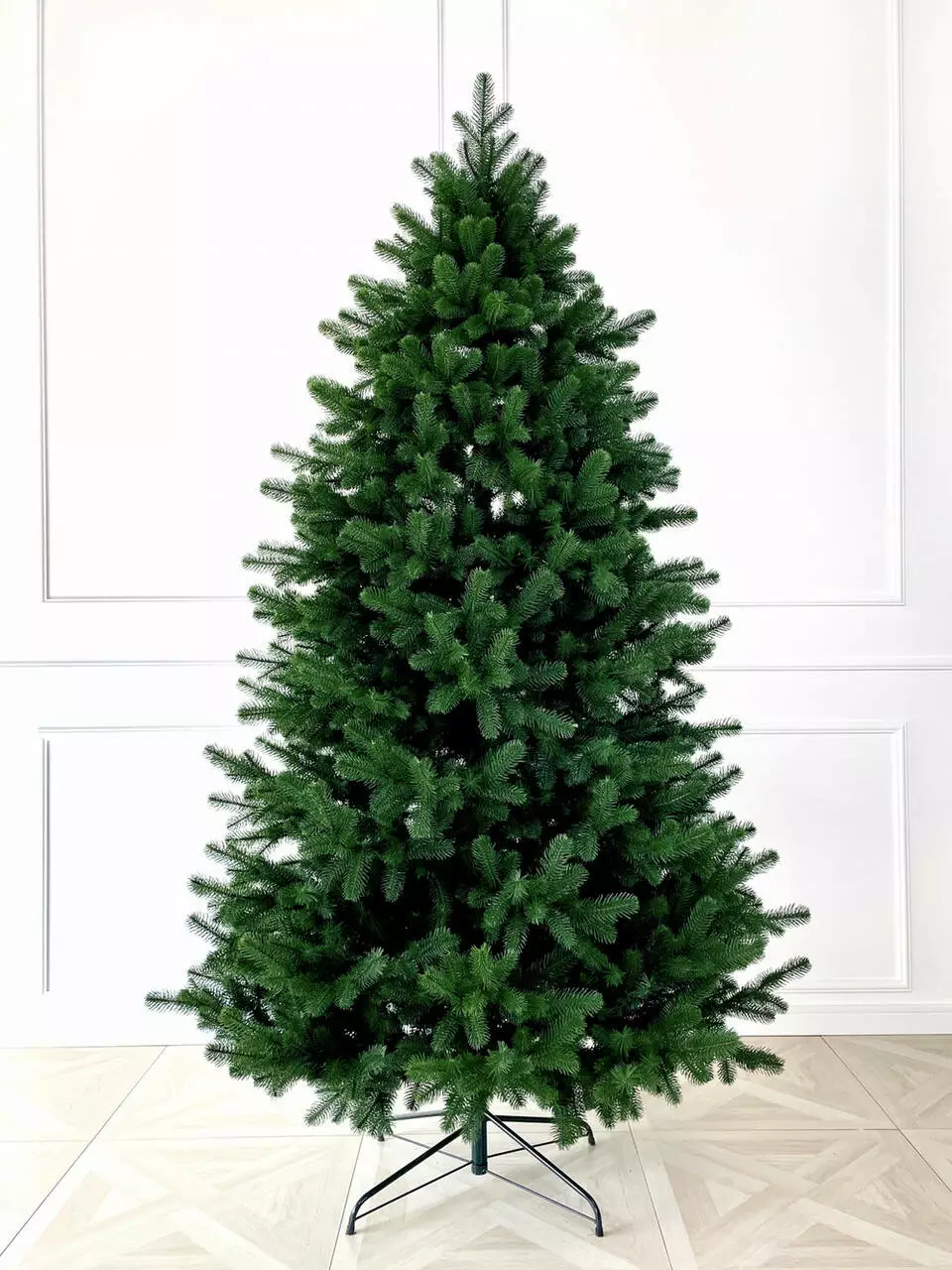 Розкішна новорічна ялинка Super Lux створена з крупних і пишних литих гілочок. Завдяки збільшеній кількості литих гілок, що повністю приховують стовбур, ця модель ялинки виглядає максимально об'ємною та наповненою і водночас неймовірно живою та природною. Густа та щільна крона ялинки дозволяє розмістити на ній багато прикрас та іграшок.