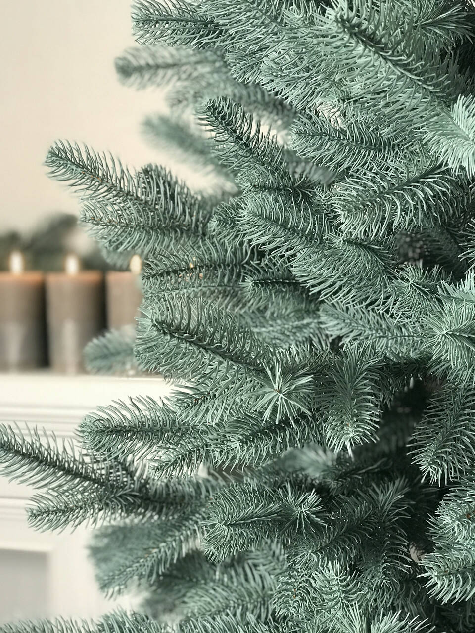 Усі гілочки ялинки виконані методом лиття, що надає їм реалістичного вигляду, наближаючи їх до справжніх лісових ялин. Густа, пишна крона вражає своєю красою, а блакитний відтінок гілочок додає дереву сучасного вигляду та унікального шарму.