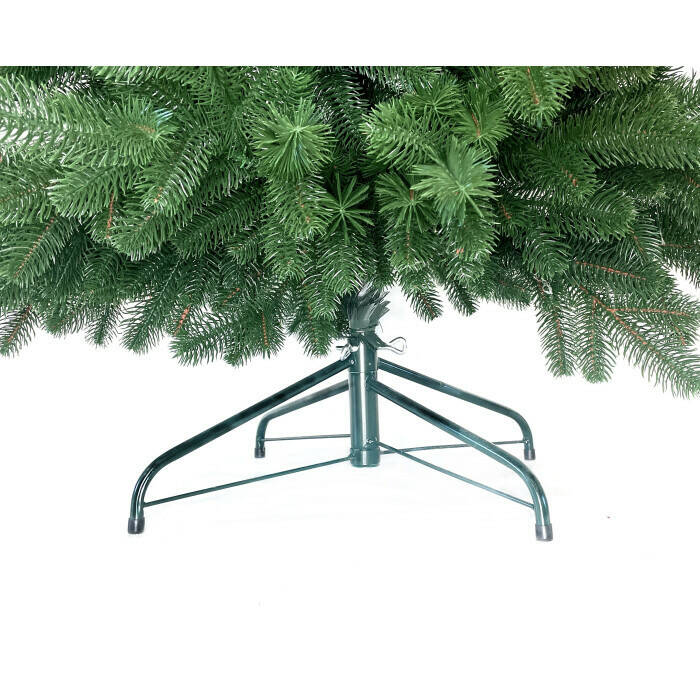 Ялинка складається з трьох частин, що робить процес складання та зберігання максимально зручним. Міцна металева підставка забезпечує стабільність і надійність. Ширина нижнього яруса становить 140 см, що додає дереву пишності та гармонійних пропорцій.