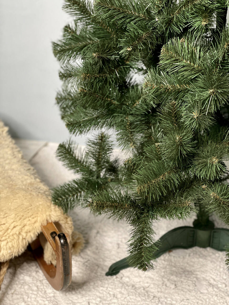 Штучна новорічна ялинка звичайна - чудовий і не дорогий варіант для святкування Різдва та Нового року. Виготовлена з якісної плівки ПВХ, має природний зелений колір гілочок. Ялинка складається з двох частин. Її легко встановити за допомогою стійкої пластикової підставки. Висота ялинки з підставкою - 180 см.